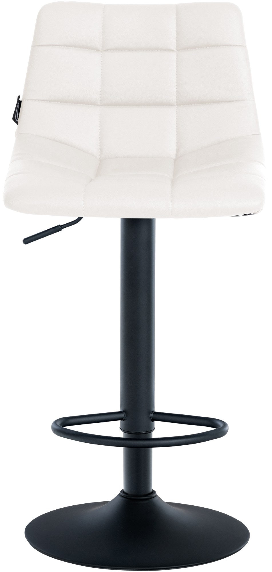 Deze elegante en stijlvolle barkruk van kunstleer maakt indruk met zijn verstelbare trompetvoet en bijbehorende voetensteun, die voor een comfortabele zitervaring zorgen. De hoogte van de kruk kan eenvoudig en snel worden aangepast aan jouw behoeften, zodat hij perfect bij jouw tafel of toonbank past. De barkruk kan ook 360° draaien, zodat je je vrij kunt bewegen.
