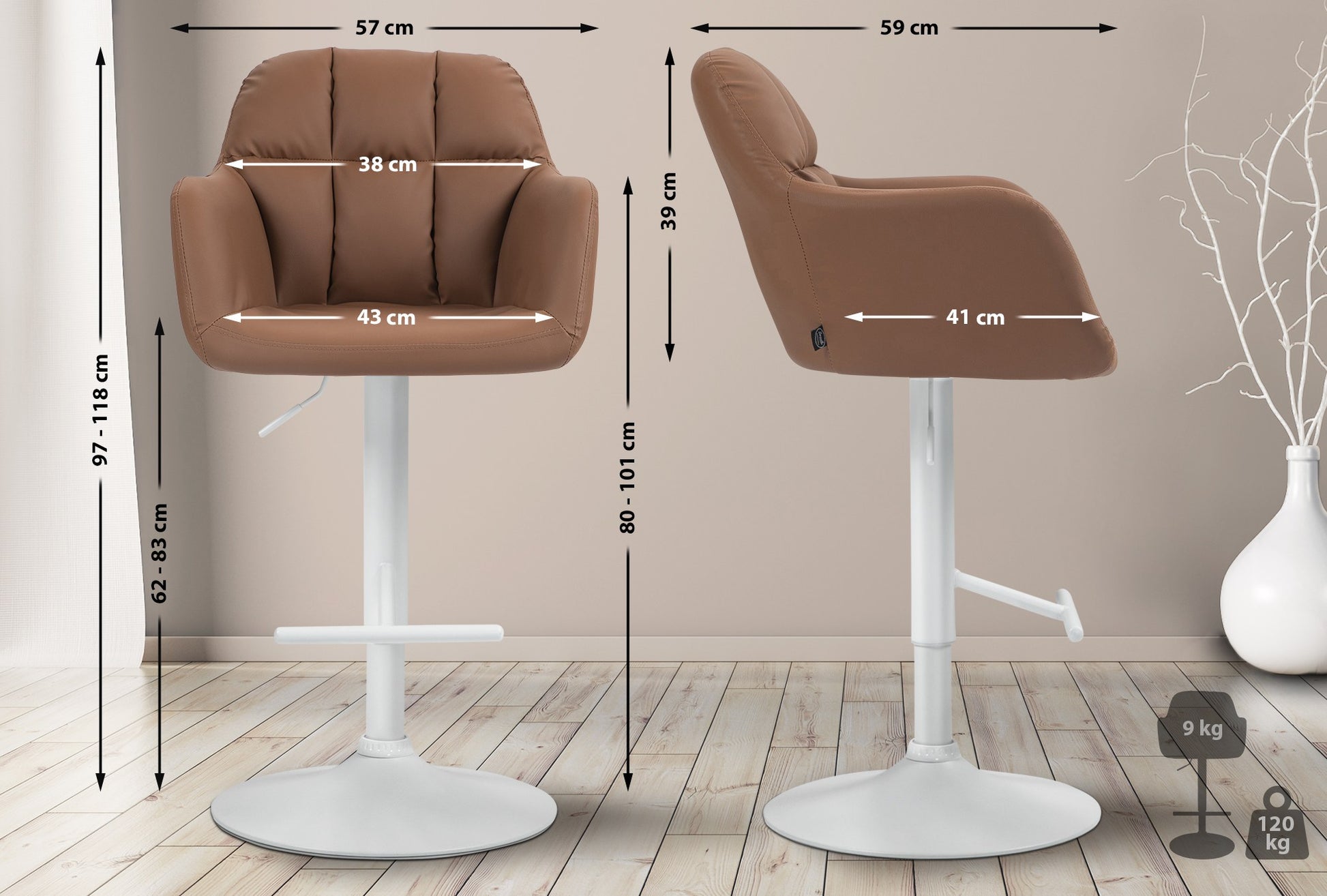 Deze barkruk heeft een functioneel ontwerp en biedt uitstekend zitcomfort. Je kunt de hoogte aanpassen van 97 tot 118 cm, en met een breedte van 57 cm en een diepte van 59 cm past hij bij diverse barhoogtes. De zitting en rugleuning, met afmetingen van 43 x 41 cm, zijn ontworpen voor optimale ondersteuning en comfort. De armleuningen en voetsteun op de stevige voet zorgen voor extra functionaliteit, terwijl de vloerbeschermer je vloer beschermt tegen schade. Met een gewicht van 9 kg kan deze barkruk tot 120 kg dragen. Bovendien biedt de 360° draaifunctie extra bewegingsvrijheid en flexibiliteit.