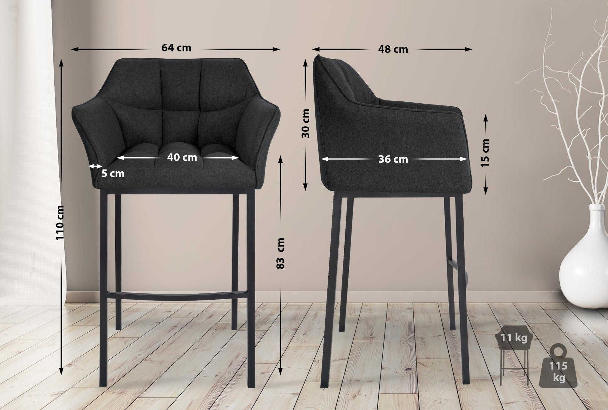Barkruk Vilt Antraciet - Barstoel - Extra Comfort met Rug- en Armleuningen, Tijdloos Ontwerp