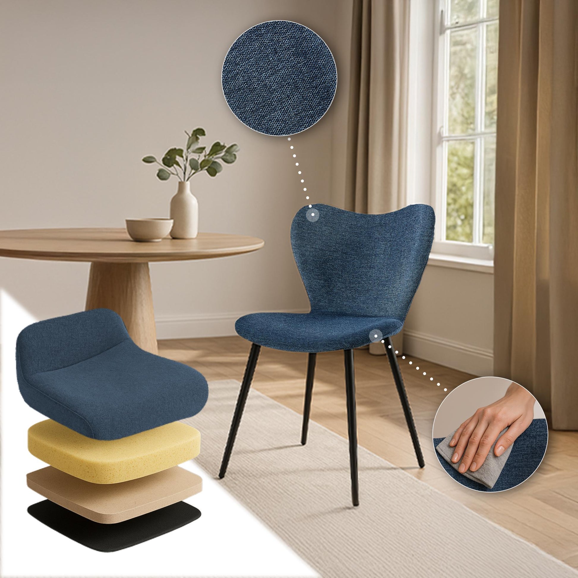 Blauwe Eetkamerstoel – Keukenstoel – Hoog Zitcomfort – Stoffen Bekleding & Stevig Metalen Onderstel