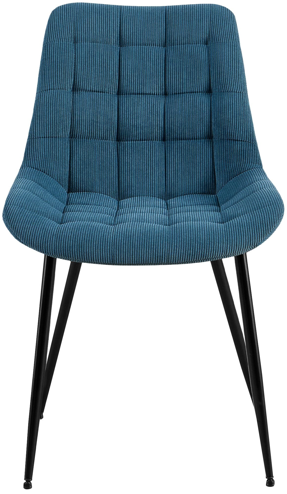 Blauwe Eetkamerstoel - Ribstof Design - Hoog Zitcomfort - Corduroy Stof