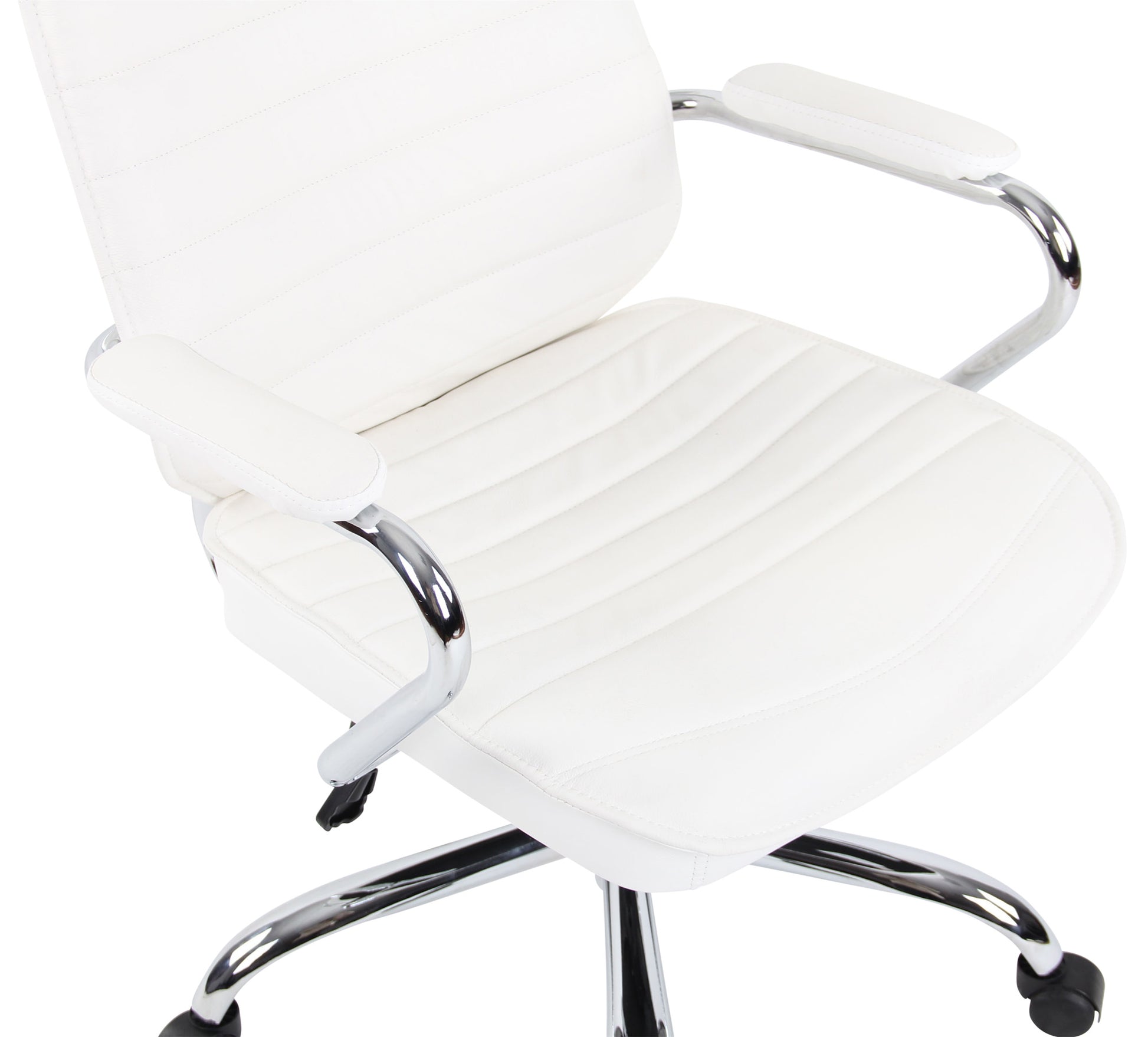 Deze bureaustoel biedt een zeer hoogwaardige bekleding met een eigentijdse uitstraling. De bekleding van echt leder is niet alleen aantrekkelijk maar ook uiterst duurzaam en makkelijk te onderhouden. Een stevig metalen frame met een chroomlook zorgt voor een stabiele basis. De zithoogte kan traploos worden versteld, wat zorgt voor urenlang ergonomisch zitgemak. Het geïntegreerde kantelmechanisme biedt extra bewegingsvrijheid. Deze bureaustoel is voorzien van vijf soepel rollende wieltjes.