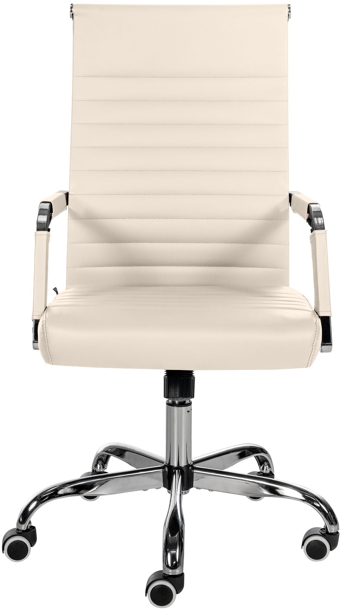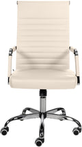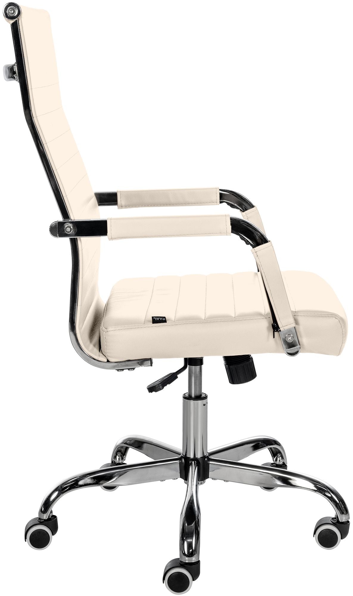Deze bureaustoel biedt niet alleen een moderne uitstraling, maar ook een hoog comfortniveau. De bekleding van hoogwaardig en eenvoudig te onderhouden kunstleer maakt langdurig zitten aangenaam. De zithoogte is traploos instelbaar voor ergonomisch comfort. Ook is er een kantelmechanisme voor extra bewegingsvrijheid. Het frame van metaal met een chroomlook biedt stabiliteit. Dankzij vijf soepele wielen beweegt u gemakkelijk over zowel harde als zachte oppervlakken.