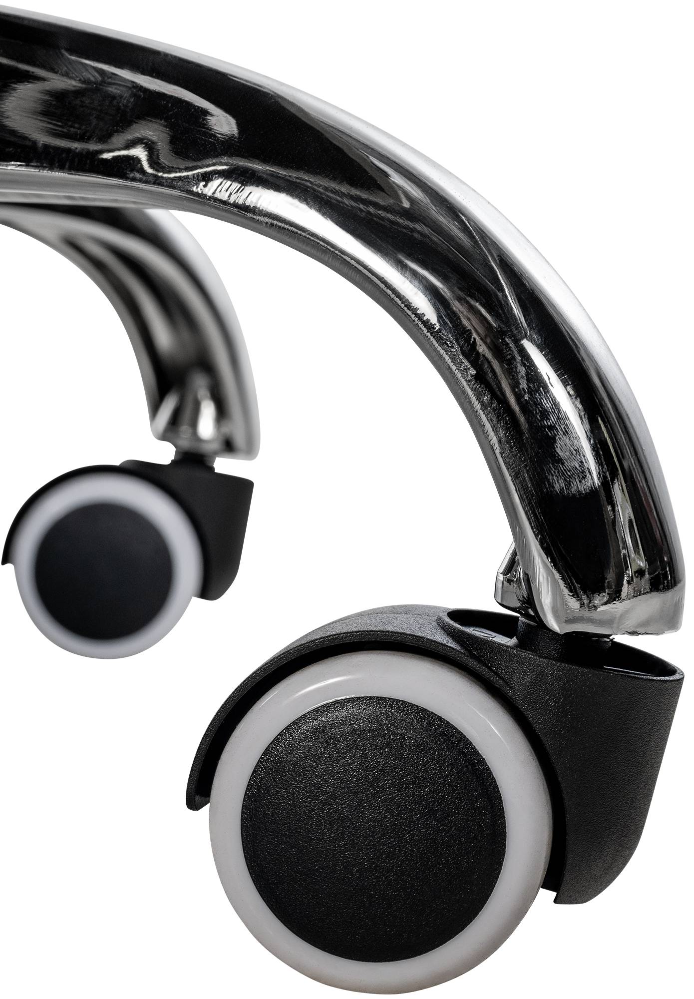 Het chique verchroomde frame en de stevige, gebogen armleuningen met kunstleren bekleding maken het ontwerp compleet.