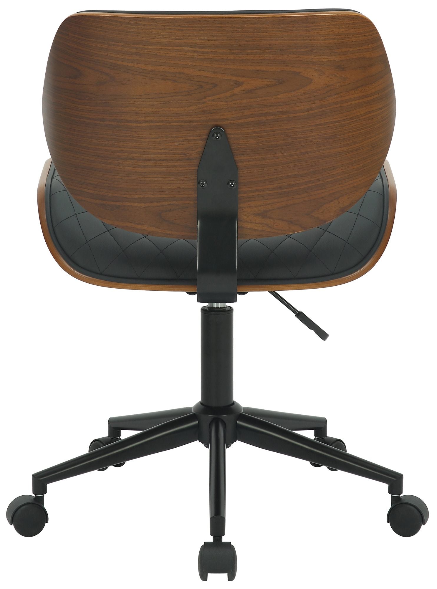 De zitting en rugleuning zijn vervaardigd van massief hout en bekleed met kunstleer, wat de stoel een elegante en hoogwaardige uitstraling verleent. De combinatie van hout en kunstleer maakt deze stoel een echte eyecatcher in zowel kantoorruimtes als thuiswerkplekken.