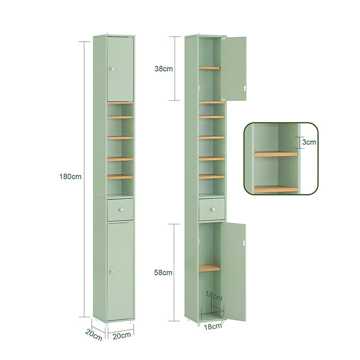 Ceder Badkamerkast - Opbergoplossing - Badkamerorganizer - Verstelbare Planken - Kantelbestendig - 20x180x20cm
