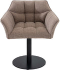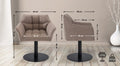 Deze eigentijdse loungestoel biedt optimaal zitcomfort en voegt een vleugje elegantie toe aan elke kamer! De rugleuning, de armleuningen en de bekleding zorgen voor een gezellige en uitnodigende plek om te relaxen. De stevige metalen basis garandeert stabiliteit en is uitgerust met vloerbeschermers om schade aan de vloer te voorkomen. Of je hem nu in de woonkamer, logeerkamer, het kantoor, de serre of eetkamer plaatst - deze stoel past perfect in iedere omgeving.