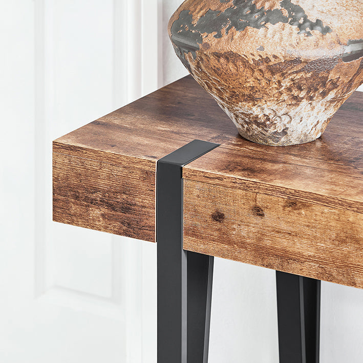 Maak kennis met de consoletafel, een perfecte mix van industriële charme en eigentijds design. Dit veelzijdige stuk is ideaal voor elke kamer en biedt zowel functionaliteit als een stijlvolle esthetiek. Het ruime oppervlak en de open opbergruimte bieden voldoende ruimte voor al uw benodigdheden.