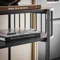 De consoletafel is een veelzijdig meubelstuk, ideaal voor je gang, woonkamer of kantoor. Hij biedt voldoende opbergruimte en beschikt over een duurzame constructie met robuuste MDF-platen en een metalen frame.