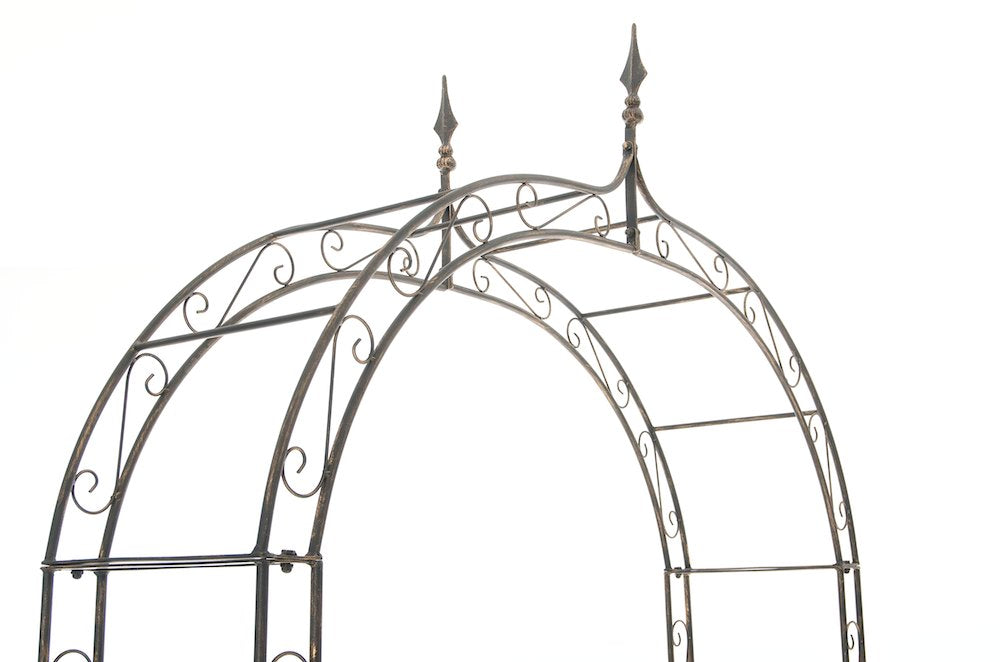De decoratieve tuinboog is vervaardigd uit sterk en dik buisvormig ijzer. Hij wordt samengesteld uit slechts enkele onderdelen. Een speciale coating zorgt ervoor dat deze klimhulp van zeer hoge kwaliteit is en extreem duurzaam. De sierlijke decoraties bieden niet alleen een fraai uiterlijk, maar bieden je ook volop mogelijkheden voor je klimplanten om omhoog te klimmen, wat bevorderlijk is voor een weelderige groei.