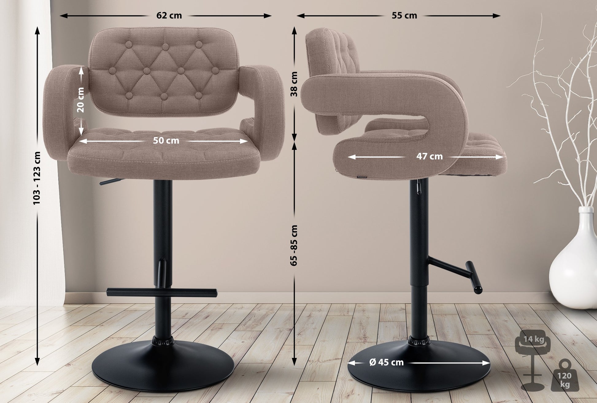 Zithoogte: 65-85 cm