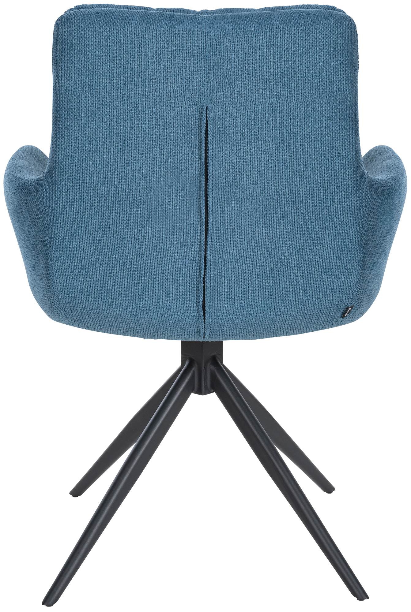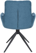 Deze eetkamerstoel combineert hoog zitcomfort met een moderne en eigentijdse uitstraling. Ideaal voor de eetkamertafel, keuken, woonkamer en andere ruimtes, deze stoel met stofbekleding is een uitstekende keuze. Cruciaal voor comfortabel zitten is de aangename vulling van zitting, rugleuning en armleuningen. De zitschaal is bekleed met onderhoudsvriendelijke, stevige stof. De draaifunctie maakt het mogelijk de zitting 180 graden te draaien, wat extra bewegingsvrijheid biedt. De basis van deze fauteuil-achtige stoel is een matzwart vierpotig frame van stevig ijzer. Hierdoor kan de stoel zonder problemen tot 120 kilo dragen. Verkrijgbaar in zeven discrete en vriendelijke kleuren. Materiaalsamenstelling: 100% polyester