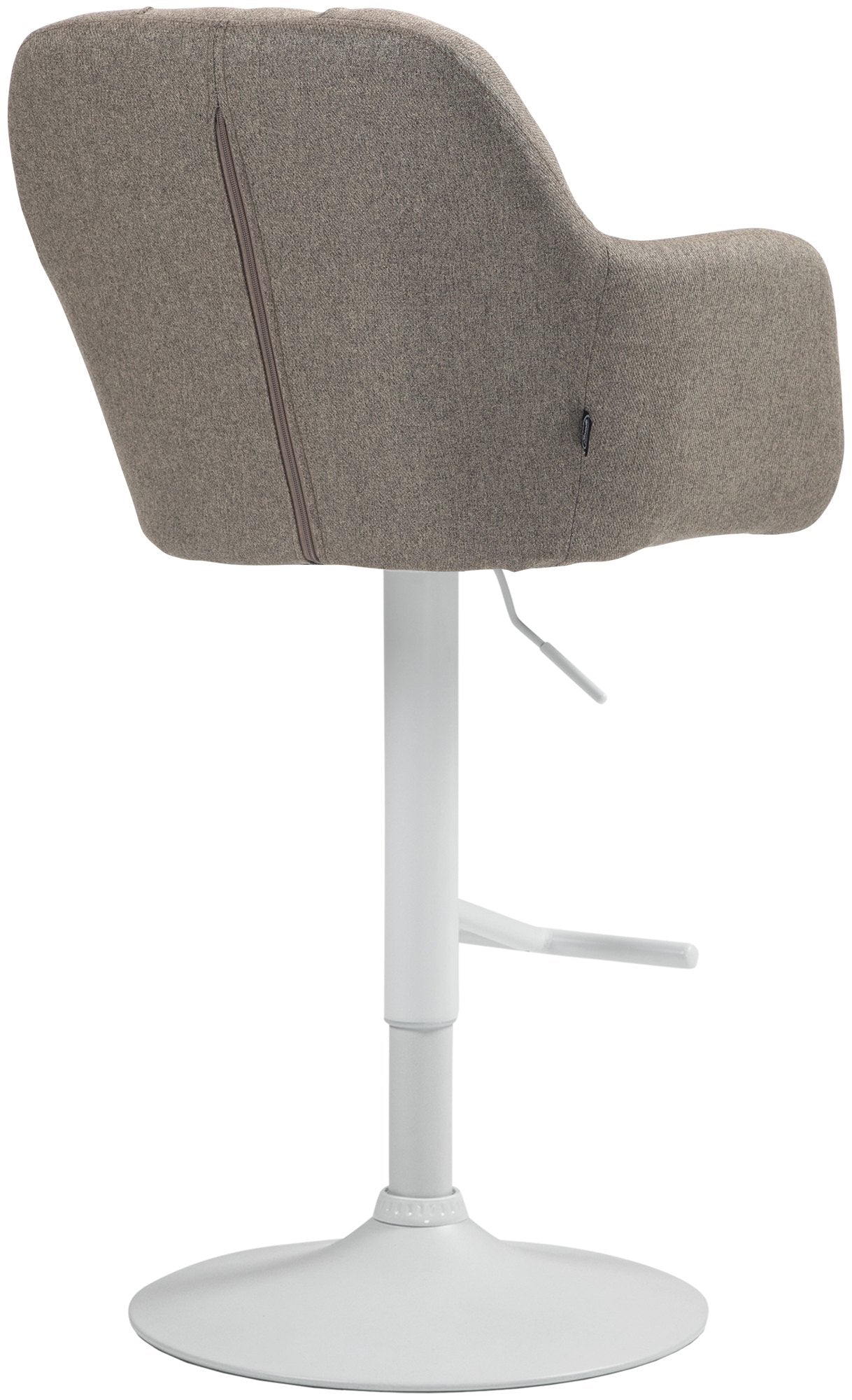 De stoffen barkruk met een functioneel ontwerp biedt uitstekend zitcomfort. Dankzij de verstelbare hoogte tussen 97 en 118 cm, een breedte van 57 cm en een diepte van 59 cm, is deze barkruk geschikt voor verschillende barhoogtes. De zit- en rugleuning van 43 x 41 cm zijn ontworpen om steun en comfort te bieden. Armleuningen en een voetsteun op de trompetvoet voegen extra functionaliteit toe, terwijl de vloerbeschermer zorgt dat er geen schade aan de vloer ontstaat. Met een gewicht van 9 kg en een draagvermogen van maximaal 120 kg, is deze barkruk een stevige keuze. De 360° draaifunctie bevordert bovendien mobiliteit en flexibiliteit.