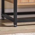 - Gemaakt van hoogwaardig spaanplaat met houteffect en zwart gepoedercoat stalen frame. Het blad is gemaakt van gehard glas.