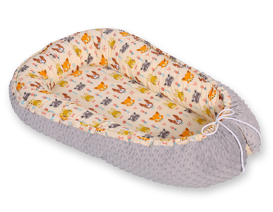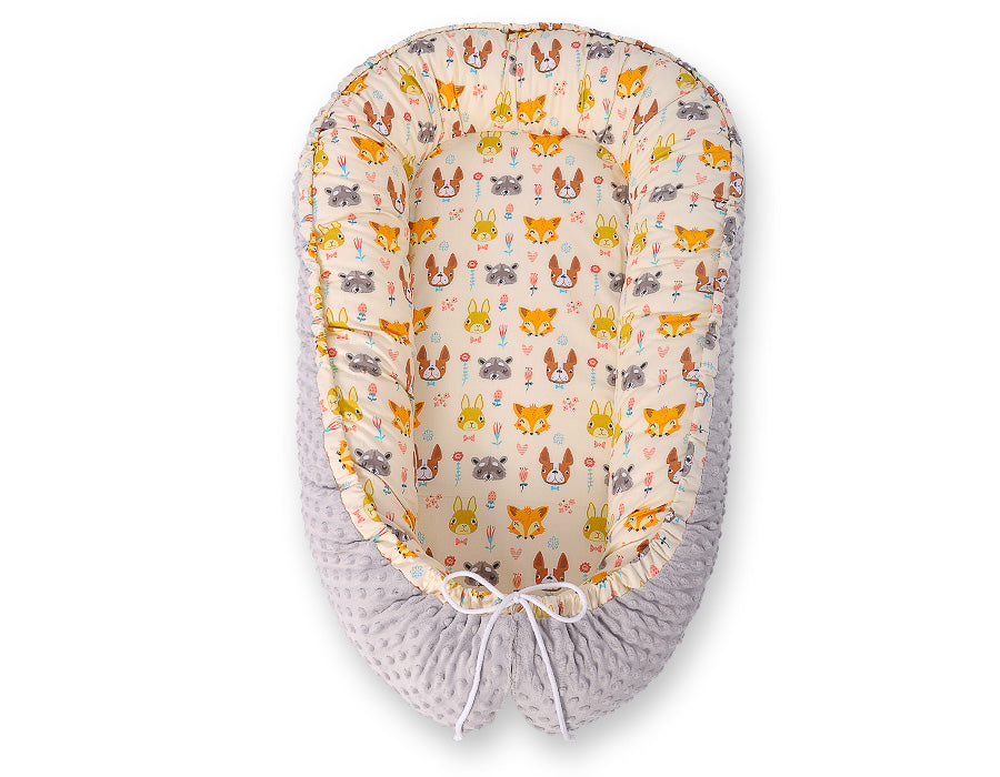 Dubbelzijdig baby nest – babynestje – veilig en ademend voor diepe slaap – crème dierenmotief