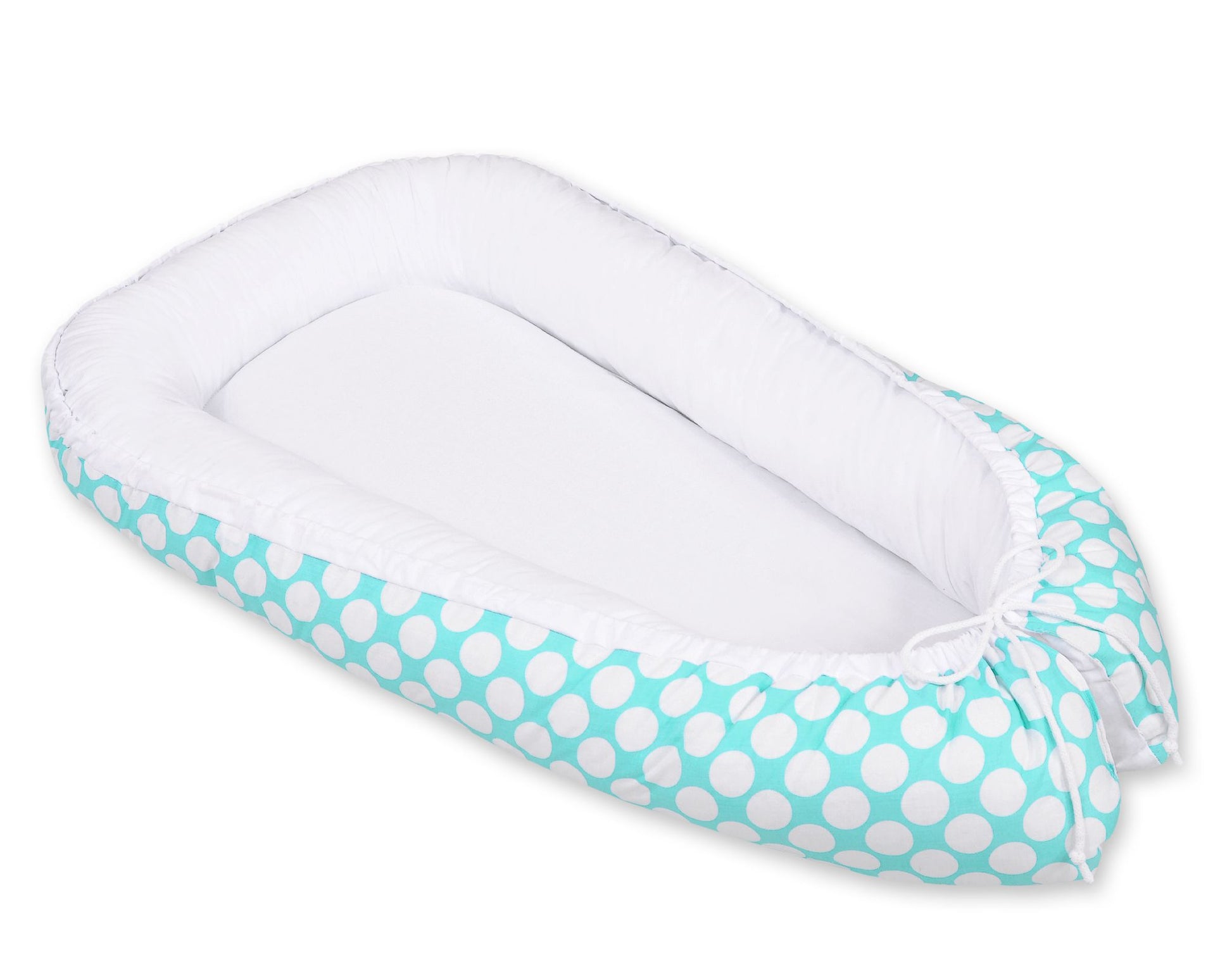 Baby Nest Dubbelzijdige Premium Cocoon voor Baby's – BOBONO Turquoise met Stipjes/Wit