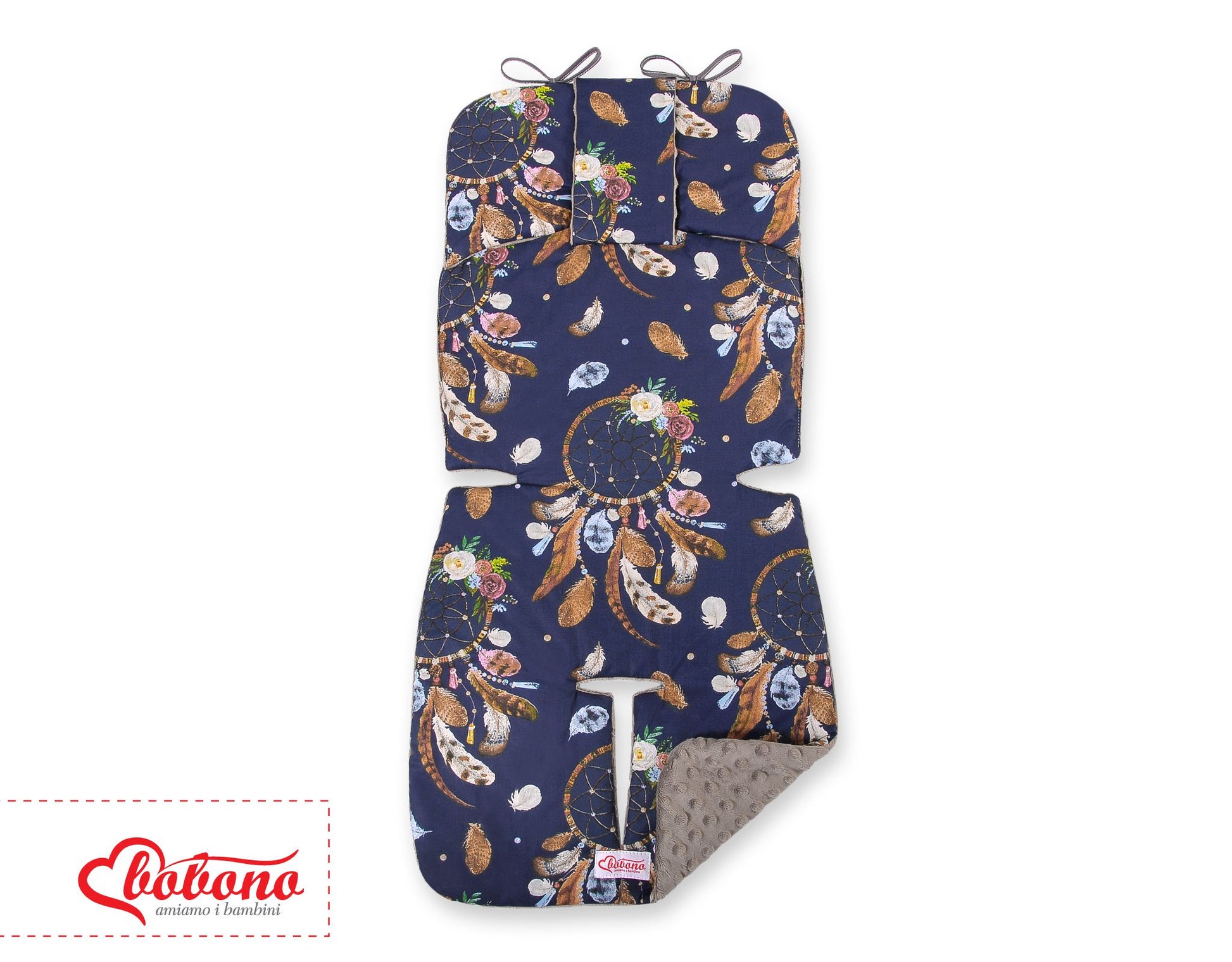 Dubbelzijdige kinderwageninleg BOBONO - dream catchers donkerblauw/grijsbruin