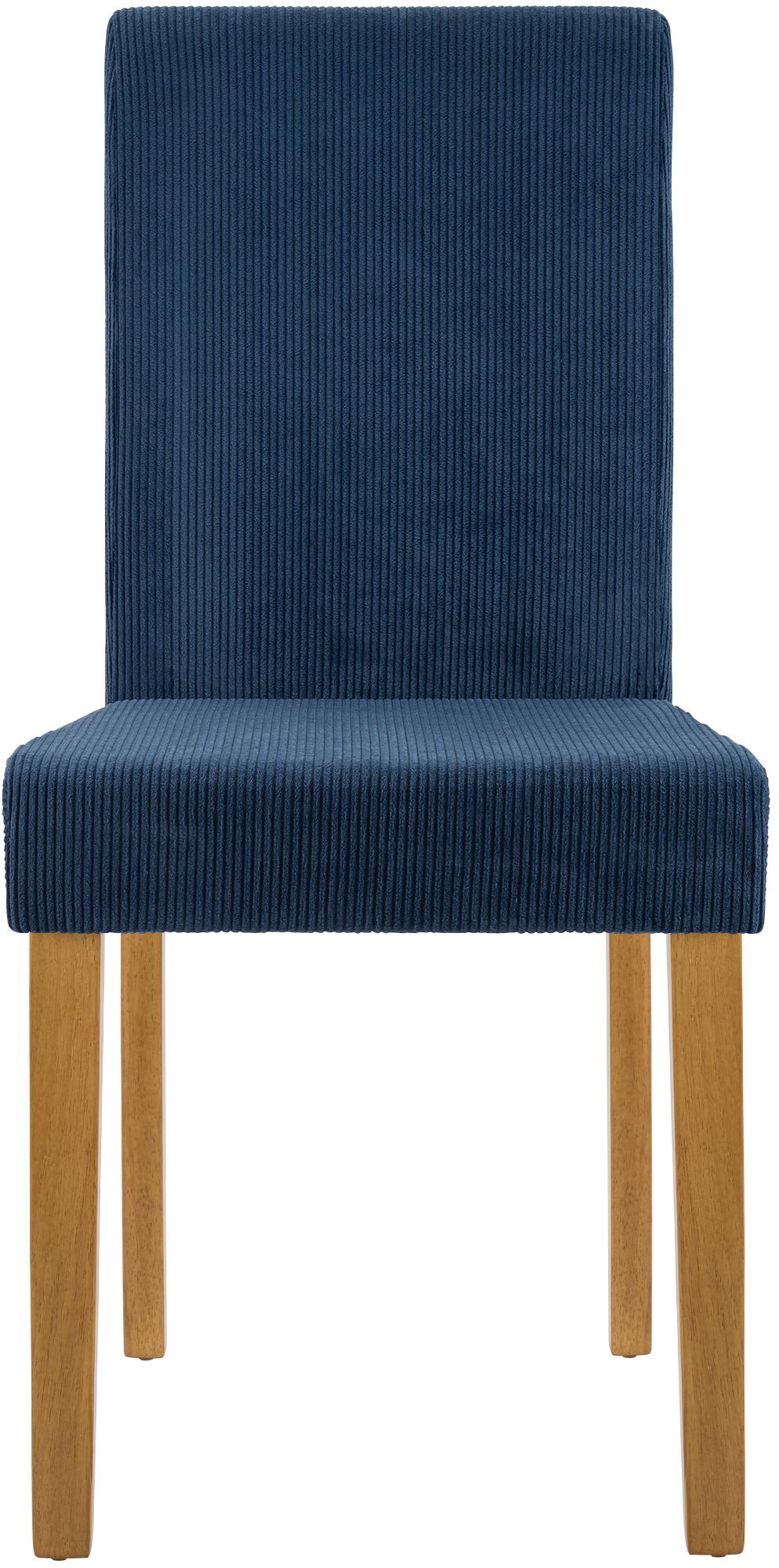 Comfortabele eetkamerstoel met corduroy bekleding in blauw, antiek licht
