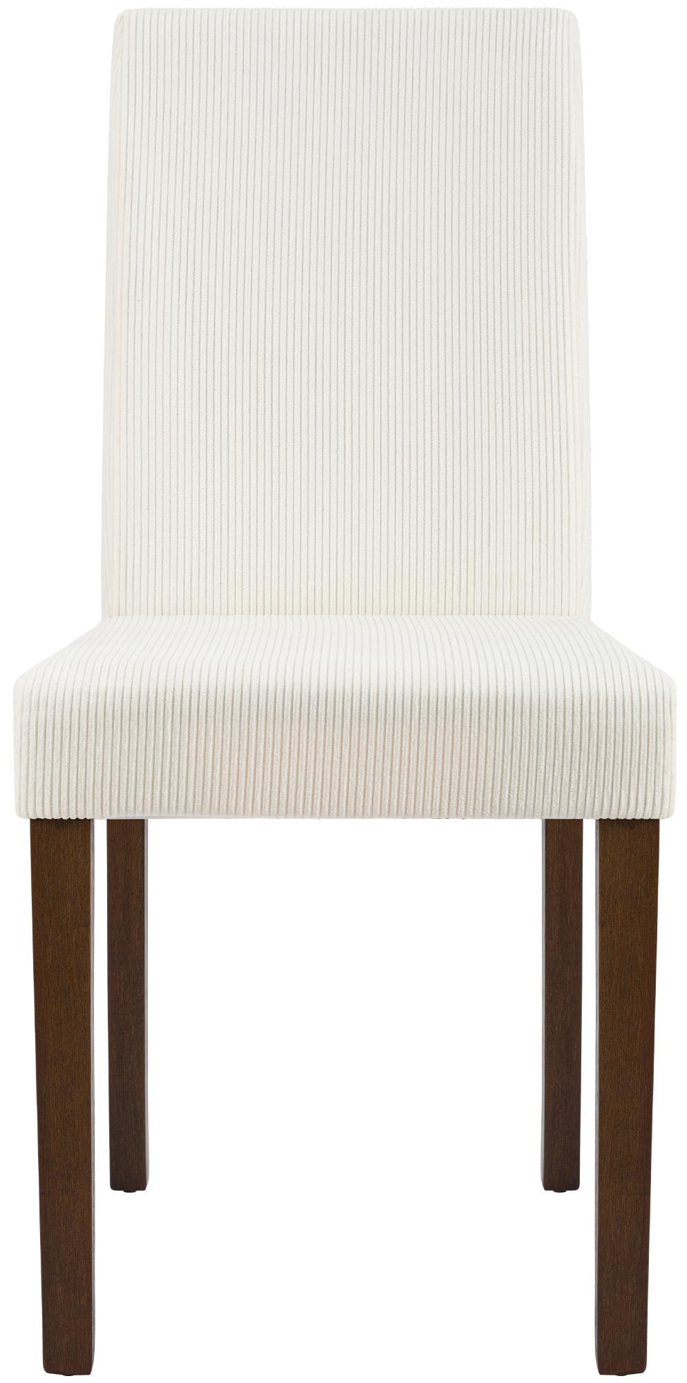 Comfortabele eetkamerstoel met corduroy bekleding in crème, antique donker