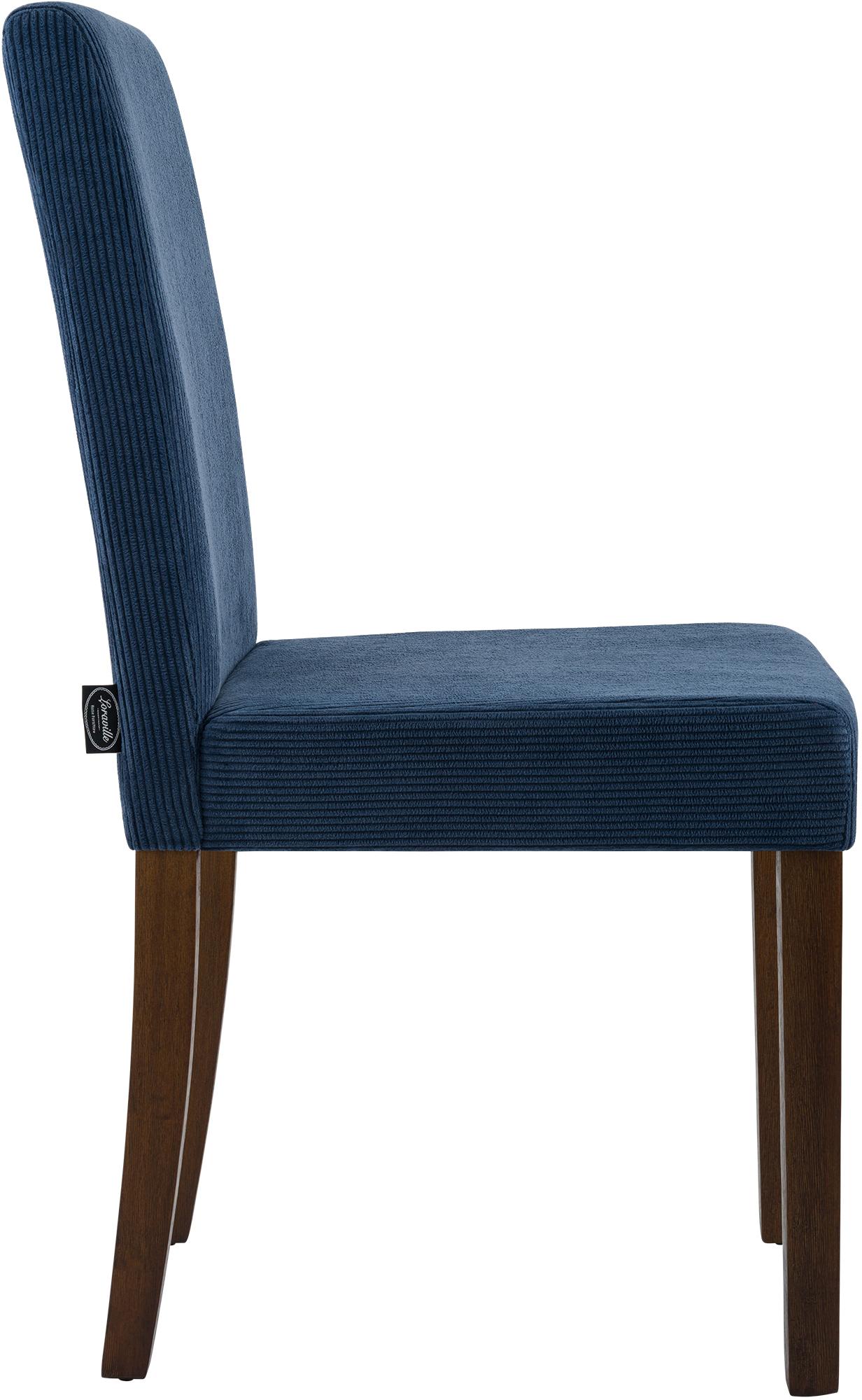 Comfortabele eetkamerstoel in blauwe corduroy, antiek donker
