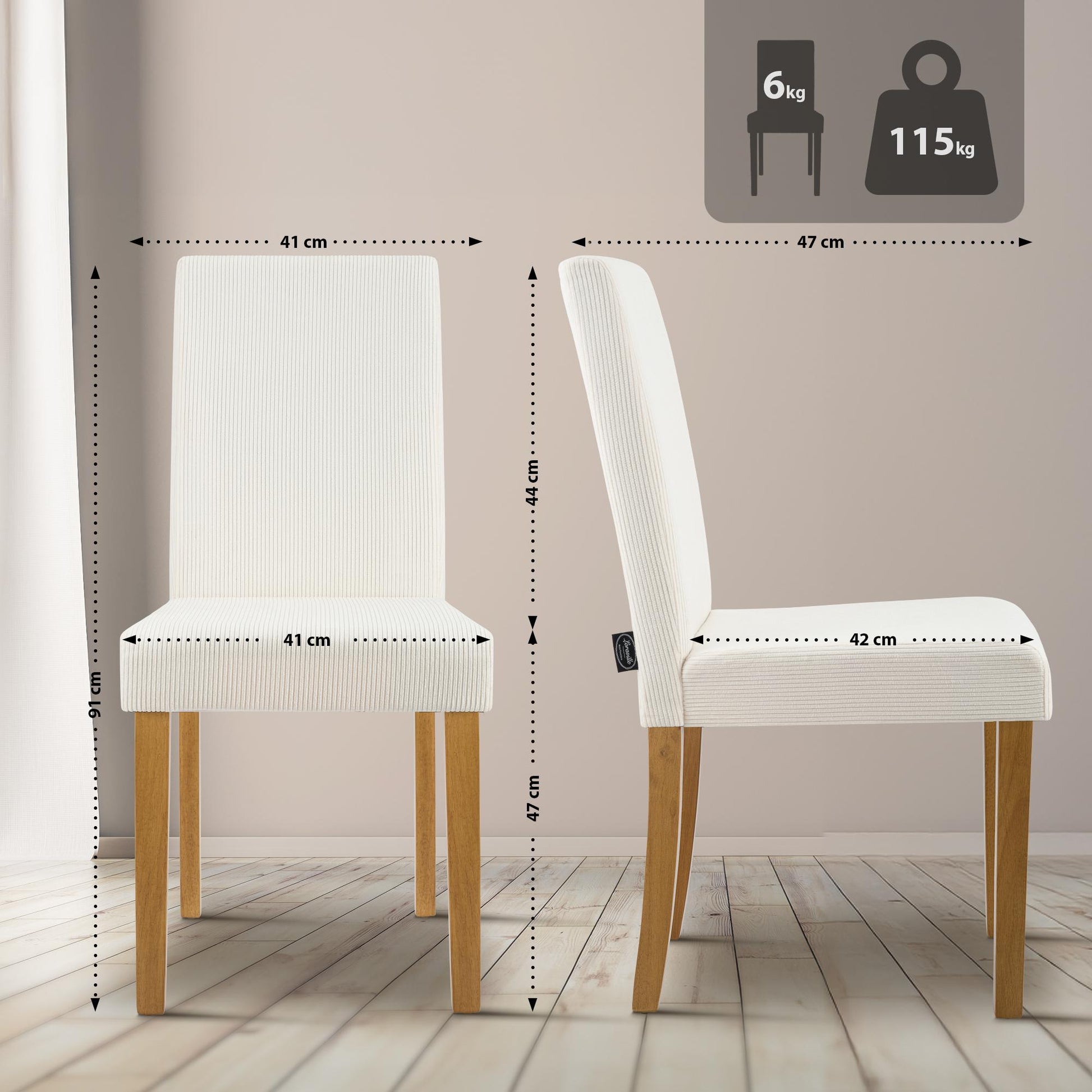 Elegante eetkamerstoel in corduroy, crème-kleur