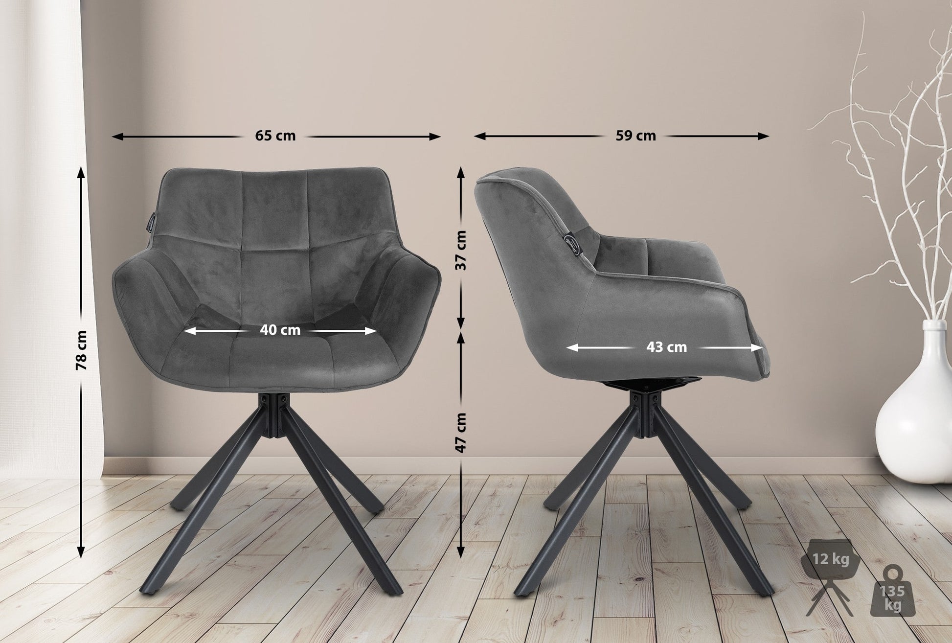 De stoel staat op een modern metalen 4-poots frame met een speciaal mechanisme dat na het opstaan de stoel automatisch naar zijn oorspronkelijke positie terugdraait. Bovendien heeft de stoel vloerbeschermers op de poten om krassen te voorkomen. Zo combineert deze stoel een stijlvol ontwerp met uitzonderlijk comfort en praktische aandacht voor een duurzaam interieur.