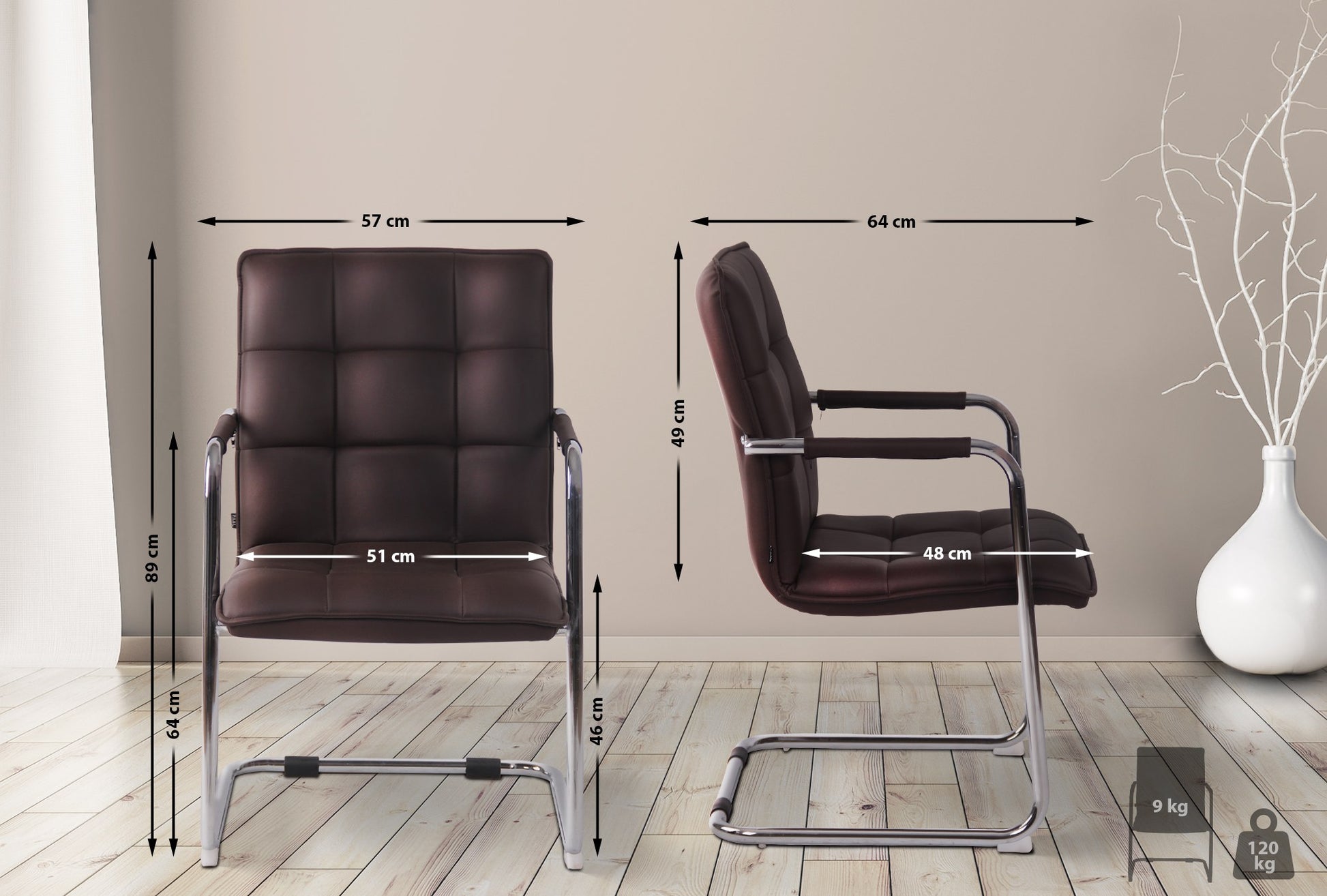 Deze eetkamerstoel overtuigt niet alleen door het moderne uiterlijk, maar ook op het gebied van comfort doet hij niemand tekort. De aangenaam hoge, schuin geplaatste rugleuning, armleuningen en de comfortabele bekleding zorgen ervoor dat dit model ook op lange avonden het hoogste zitcomfort biedt. Het gewatteerde imitatielederen oppervlak is niet alleen duurzaam, maar ook gemakkelijk schoon te maken. Het vrij zwenkende metalen frame, beschikbaar in chroomlook of zwart, is zeer stabiel en biedt een aangename schommel tijdens het zitten en bewegen. Dankzij het moderne en toch eenvoudige ontwerp past deze eetkamerstoel bij bijna elke interieurstijl.