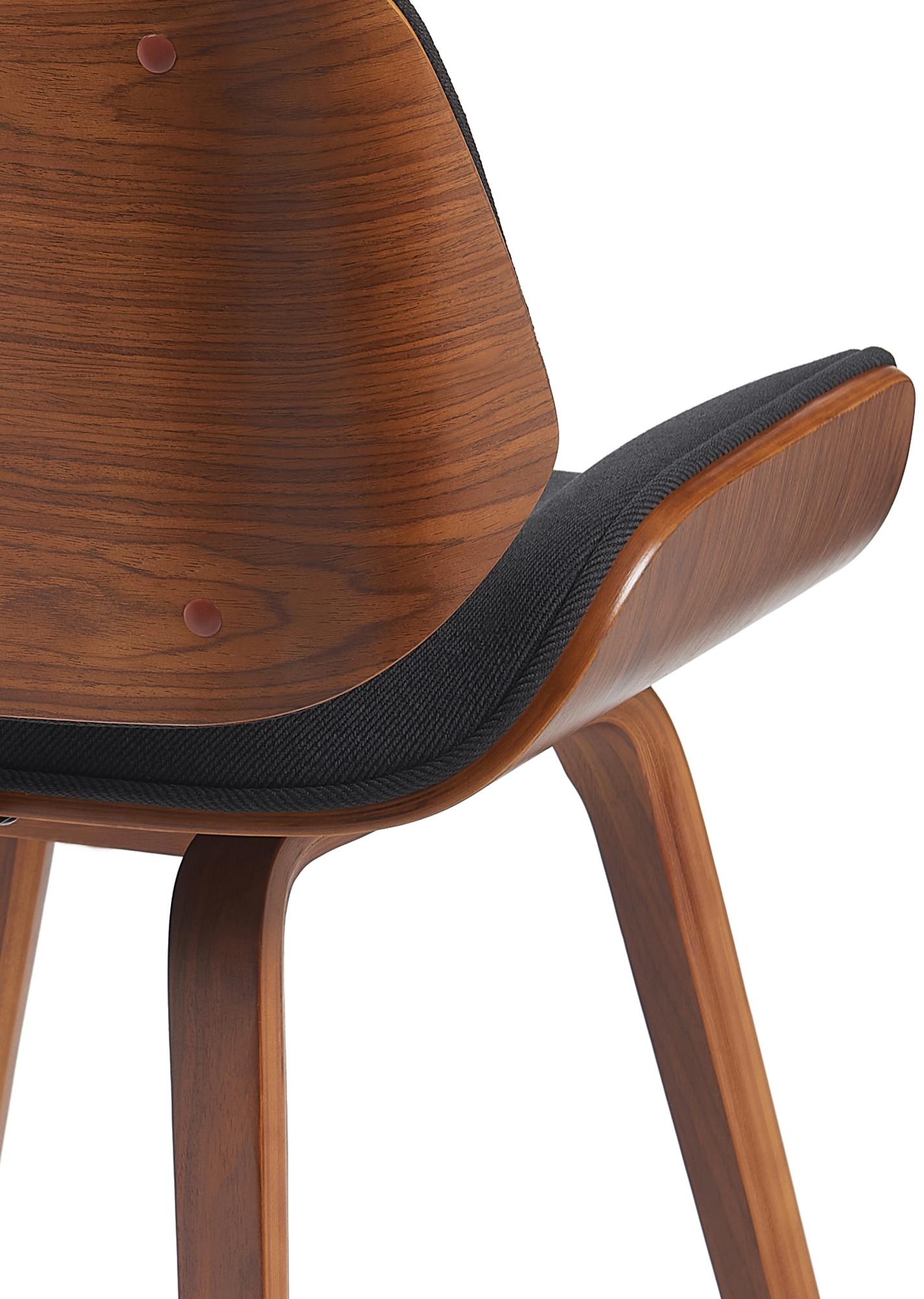 Het frame van stevig gebogen hout in een elegante walnootlook geeft de stoel een hoogwaardige uitstraling die perfect harmoniëert met verschillende interieurstijlen. Vloerbeschermers onder de stoelpoten beschermen kwetsbare vloeren en zorgen ervoor dat de stoel geruisloos kan worden verplaatst.