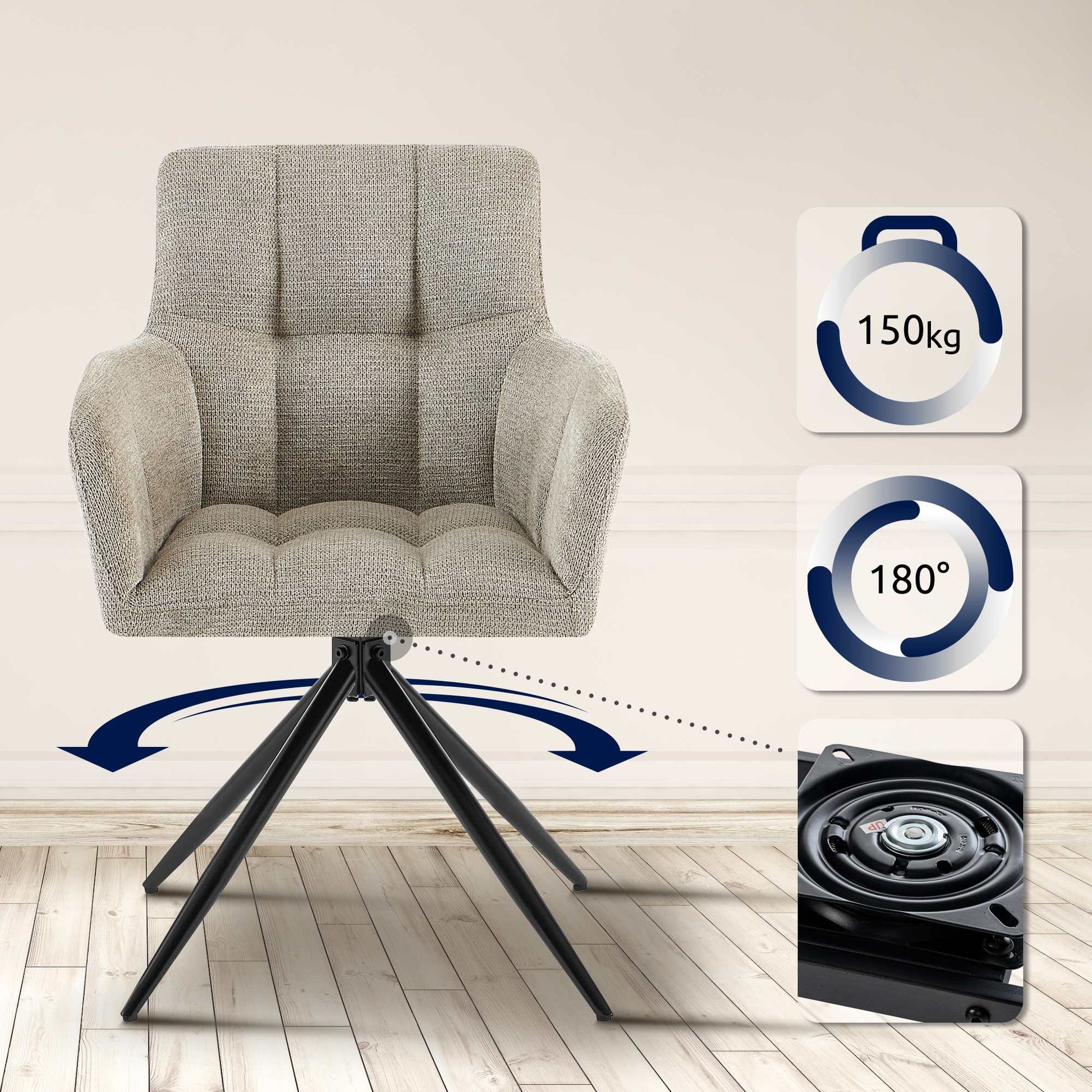 De eetkamerstoel met stoffen bekleding biedt ultiem comfort gecombineerd met een elegant ontwerp. Deze stoel valt op door zijn stevige constructie. Het solide metalen frame garandeert uitstekende stabiliteit en duurzaamheid, terwijl de hoogwaardige en slijtvaste bekledingsstof zorgt voor langdurig zitgenot.