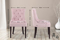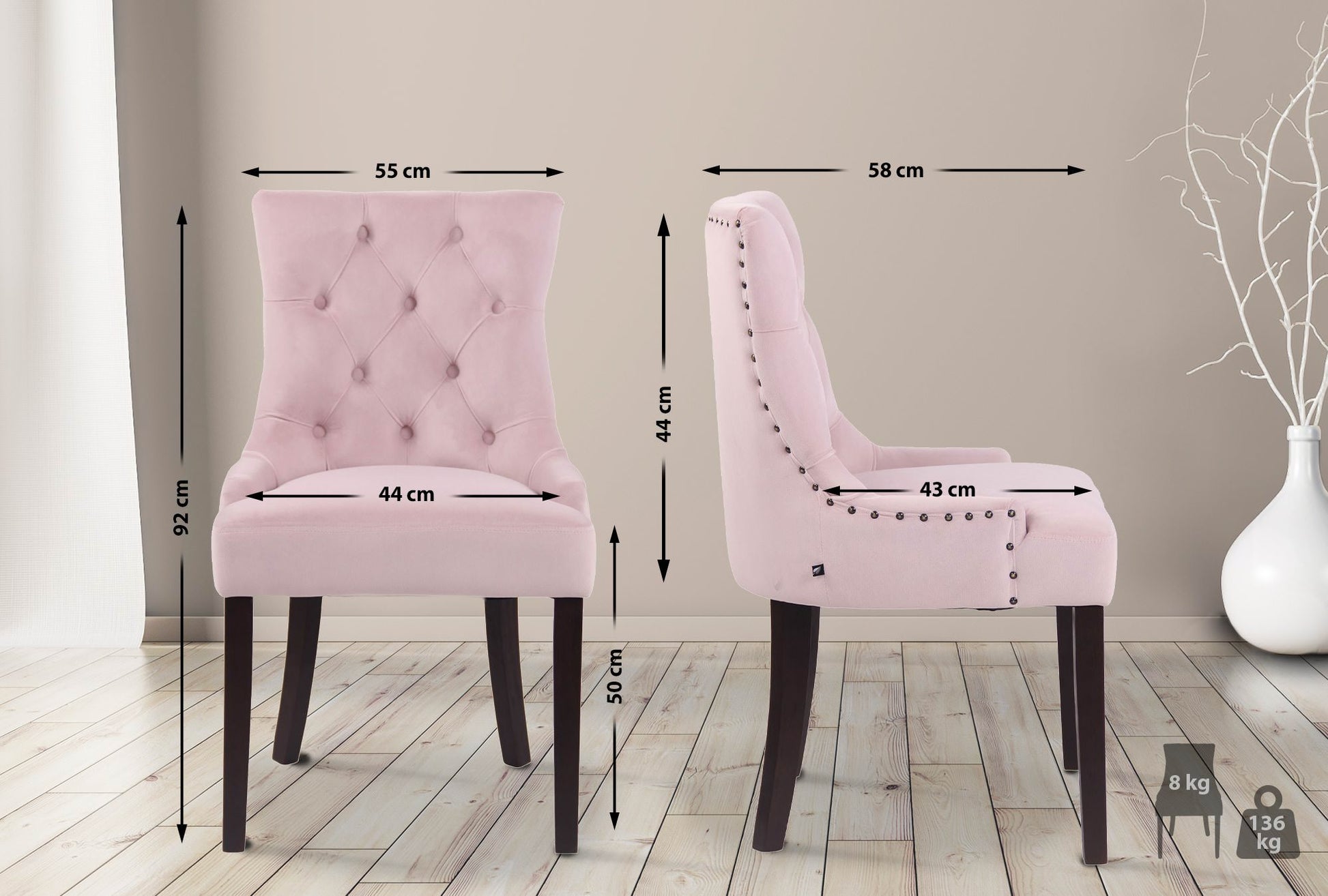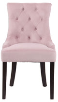 Deze eetkamerstoel zal de sfeer in uw ruimte op stijlvolle wijze verrijken. Met een fluwelen beklede zitting, siernaden en knoopdetails is het een smaakvol ontwerp. De stoel staat stevig op een houten frame. Het is een comfortabele, stevige en toch stijlvolle stoel voor dagelijks gebruik en een perfecte aanvulling op modern ingerichte kamers.