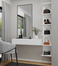 De MIKA kaptafel biedt volop voordelen: u bergt eenvoudig cosmetica, accessoires en dagelijkse benodigdheden netjes op, terwijl het slanke design bijdraagt aan een luxueuze sfeer. De brede lades garanderen uitmuntend gebruiksgemak en veiligheid, en de stevige constructie draagt tot 10 kg. Ideaal als toilettafel, make-uptafel of organizer in elke moderne ruimte. Supersnel te monteren dankzij de meegeleverde handleiding en toebehoren; pluggen dienen op de muurtype afgestemd te worden.