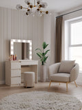 Elegant kaptafel met spiegel en LED-verlichting - Marina Serie | Kleur: Kasjmier | Maat: 98x76x51 cm