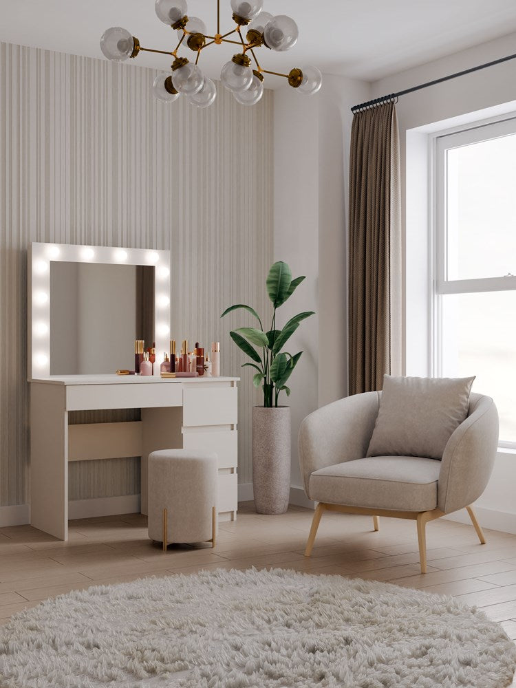 Elegante Kaptafel met Spiegel en LED-verlichting – MARINA MIJAS Rechts, Kasjmier