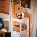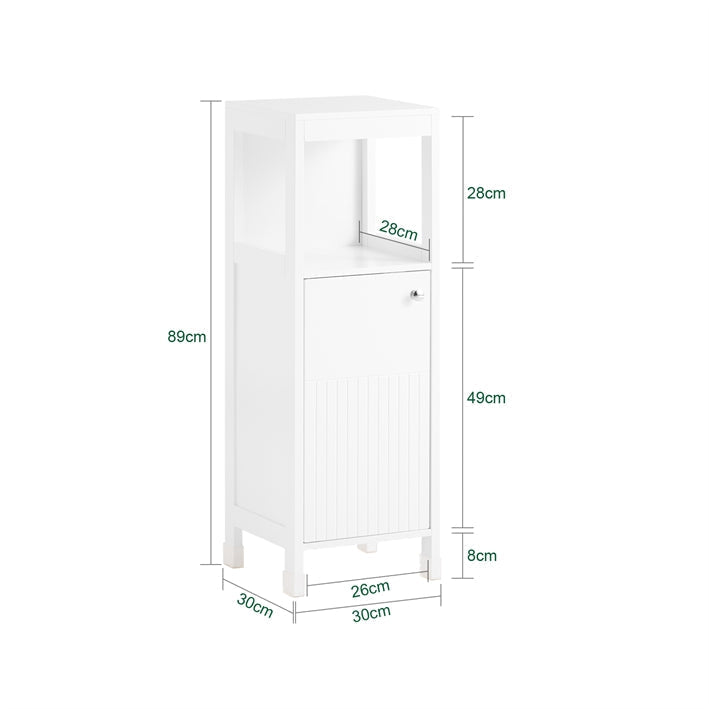 De Hoge Kast is een veelzijdige opbergoplossing gemaakt van MDF, met een gewicht van ongeveer. 9 kg, met afmetingen van 30x89x30cm. Het beschikt over 1 verstelbare plank waarmee je verschillende voorwerpen op verschillende hoogtes kunt ordenen. Ideaal voor keuken, badkamer, woonkamer, eetkamer of entree. Het voetkussen beschermt de verf tegen vocht. Daarnaast verkrijgbaar als 3-delige set. De montage is eenvoudig met de meegeleverde instructies.