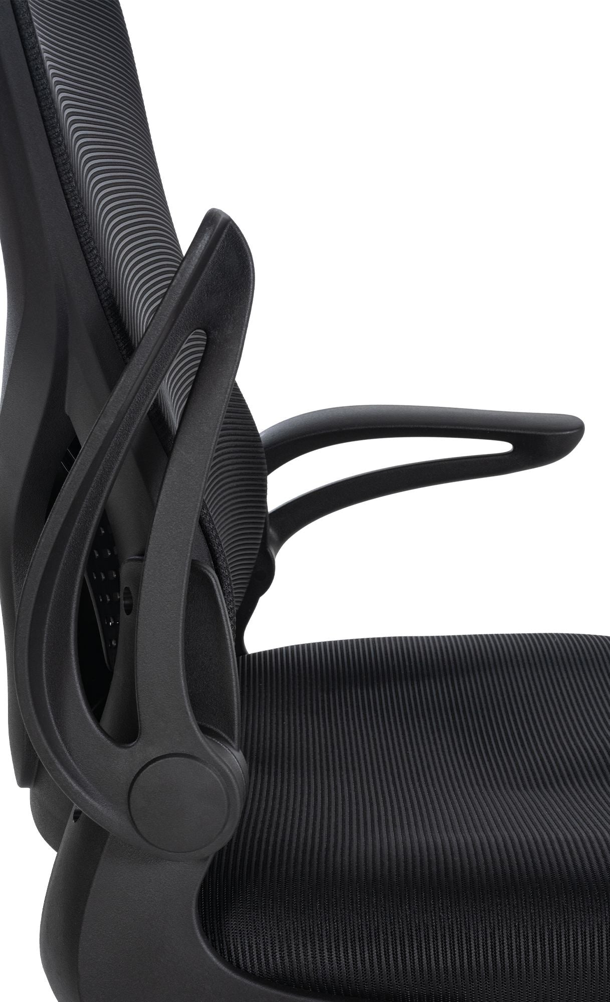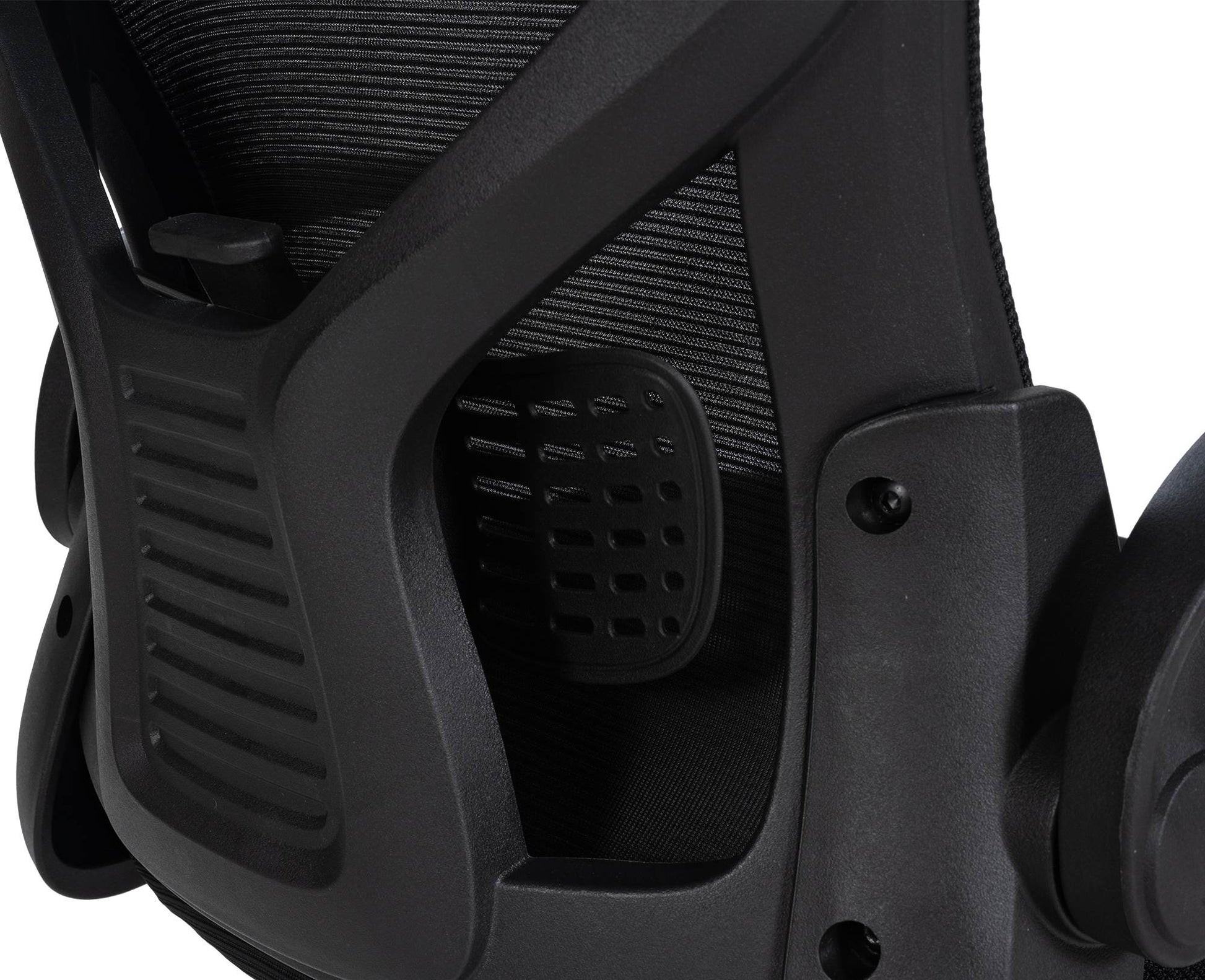 Deze stoel heeft een rugleuning gemaakt van ademend mesh-materiaal wat zorgt voor optimale luchtcirculatie, zodat je koel blijft tijdens lange werkdagen. De rugleuning heeft een schommelfunctie en een verstelbare lendensteun voor extra comfort en ondersteuning. De stoel is voorzien van makkelijk rollende wielen, wat verplaatsen eenvoudig maakt, samen met een hoogwaardig gasdrukveermechanisme voor het aanpassen van de zithoogte. De armleuningen zijn opklapbaar, wat voor extra flexibiliteit zorgt. Deze stoel is verkrijgbaar in zwart en grijs, passend bij uw stijl en kantoorinrichting.