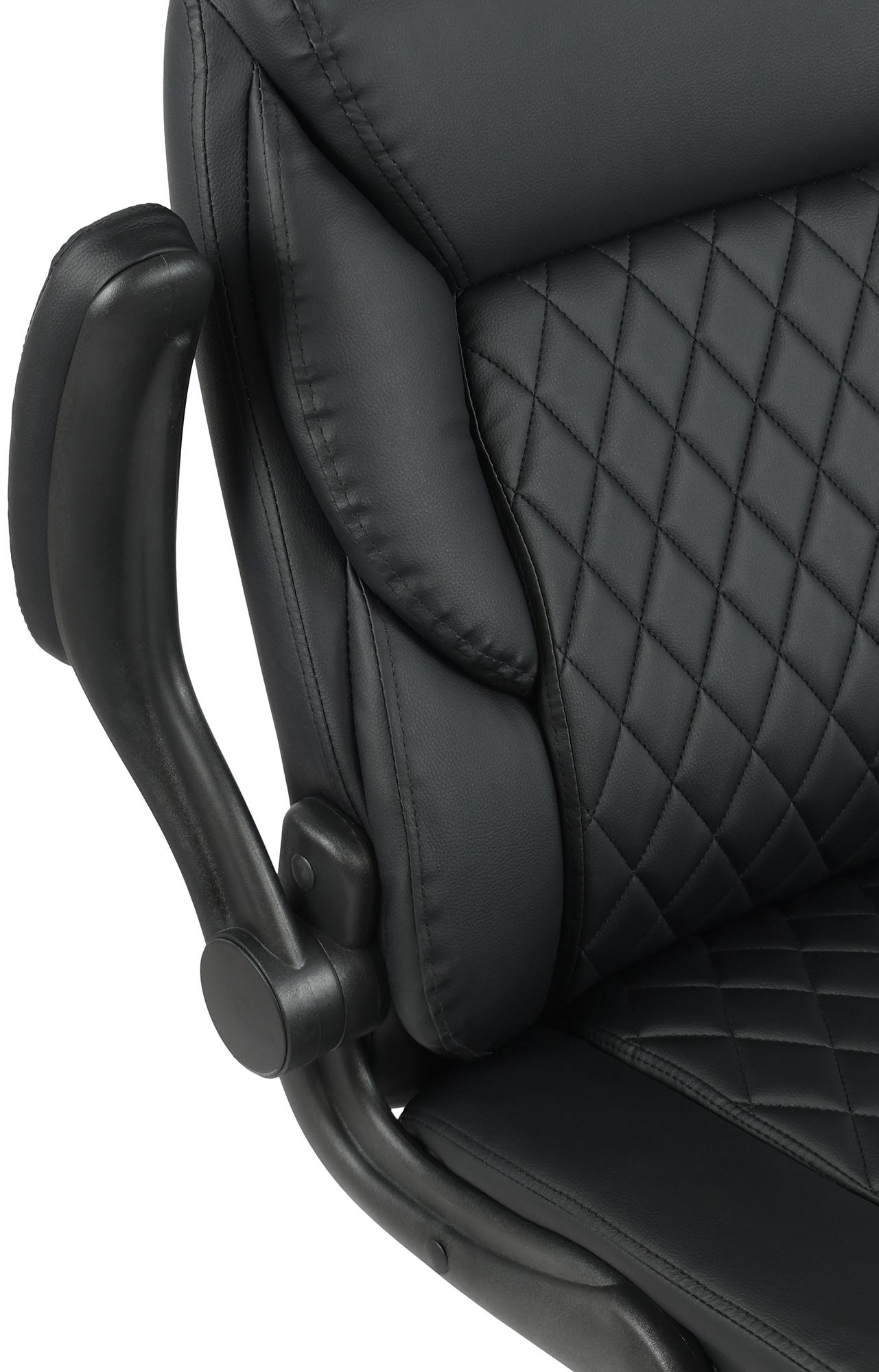 De zachte bekleding van zitting, rugleuning en armleuningen is bekleed met hoogwaardig en onderhoudsvriendelijk kunstleer. Het ruitvormige stikselpatroon draagt bij aan een moderne uitstraling.