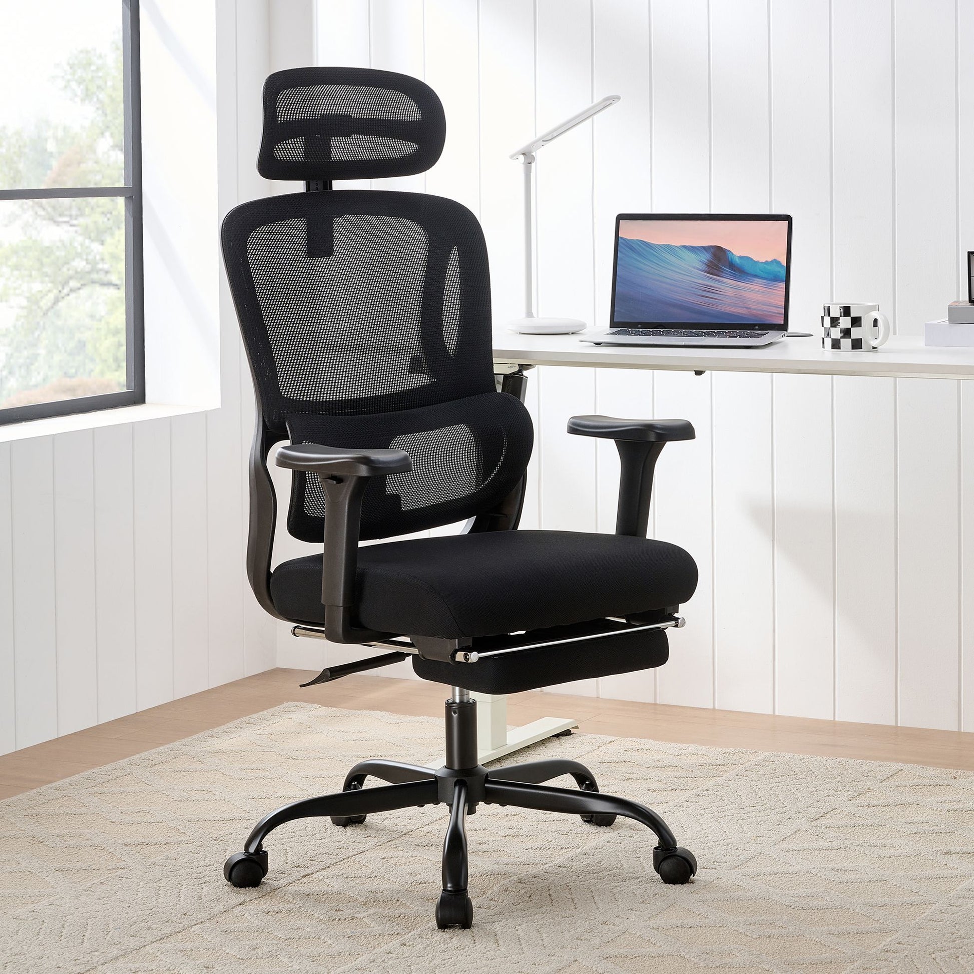 Ergonomische bureaustoel met verstelbare hoofdsteun en lendensteun