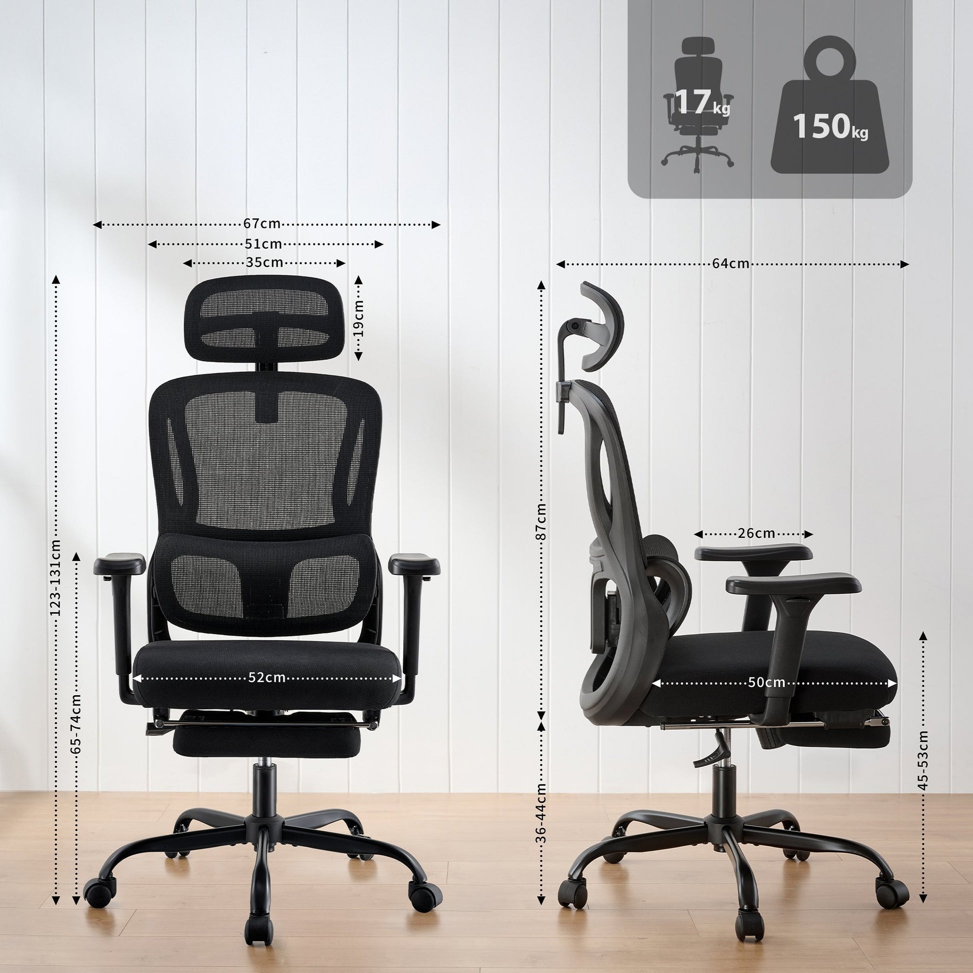 Voor extra comfort is de voetensteun uitschuifbaar en kan ruimtebesparend onder de zitting worden opgeborgen. Met een draagvermogen tot 150 kg is deze bureaustoel zowel stevig als duurzaam.