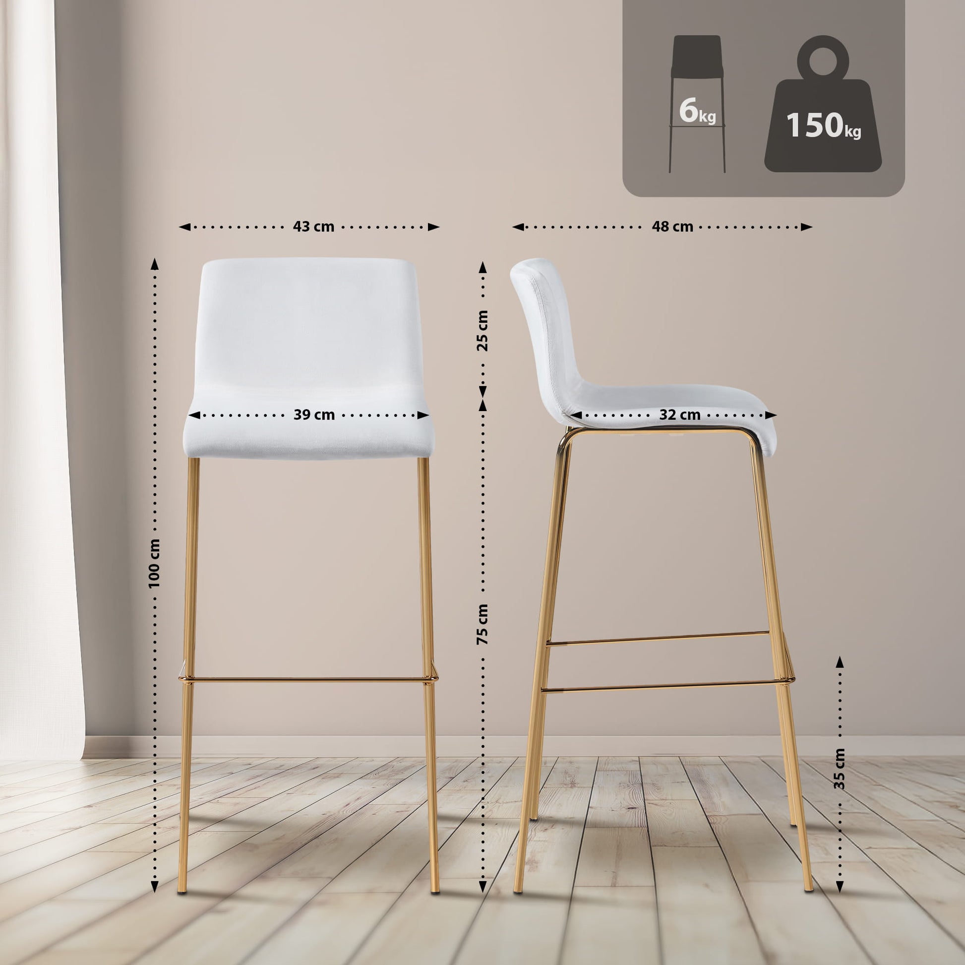 Fluwelen Barkruk - Hoge Kruk - Elegante Goudkleurige Steun & Hoog Zitcomfort