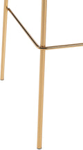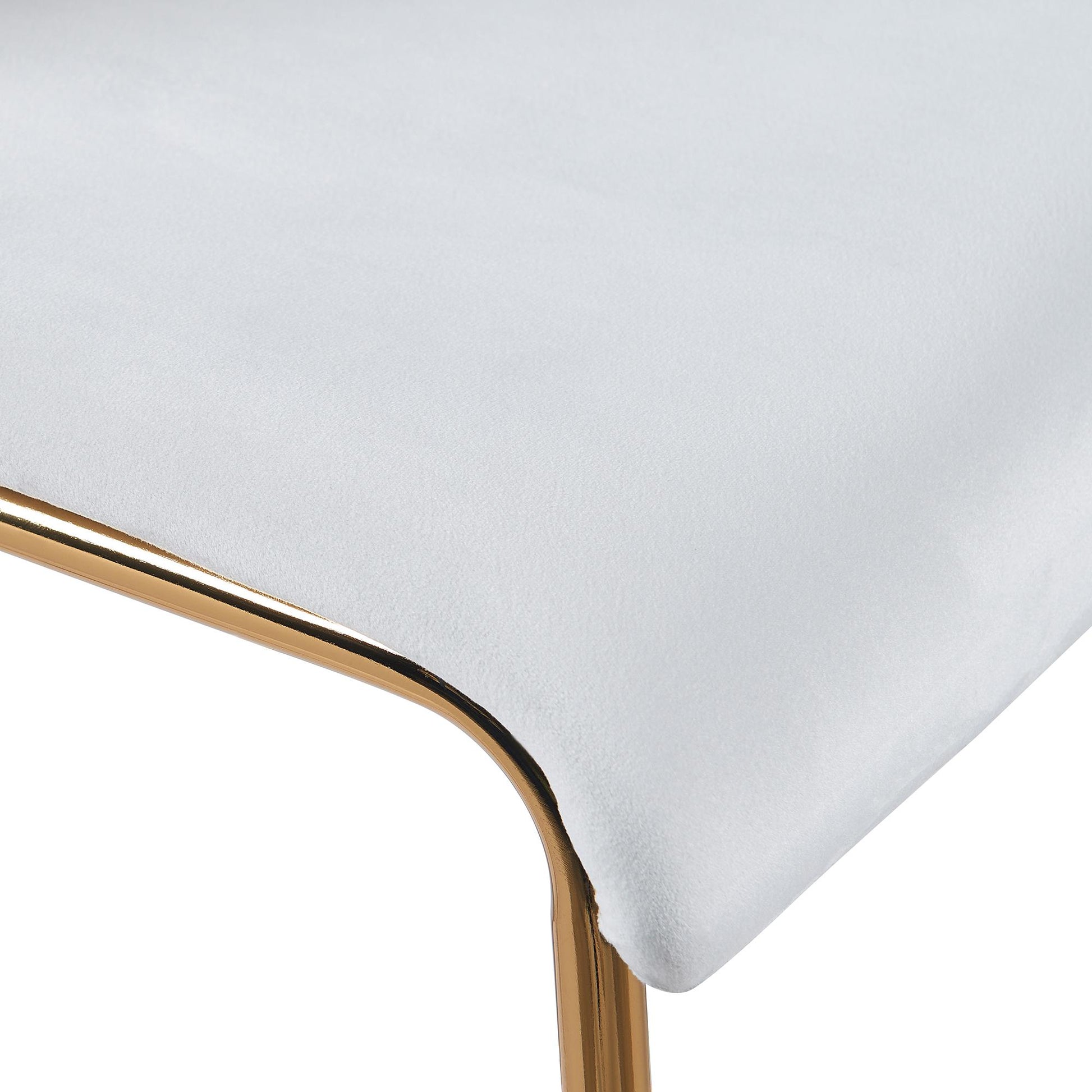 De kruk heeft een elegante uitstraling door de stijlvolle combinatie van fluwelen bekleding en een glanzend goudkleurig frame.