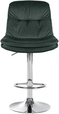 Het frame van de barkruk en de stijlvolle bekleding zorgen voor een elegante uitstraling. De zitting is bedekt met hoogwaardig fluweel. Het metalen frame is hoogte verstelbaar en dankzij de 360 graden draaibaarheid heeft u veel bewegingsvrijheid.