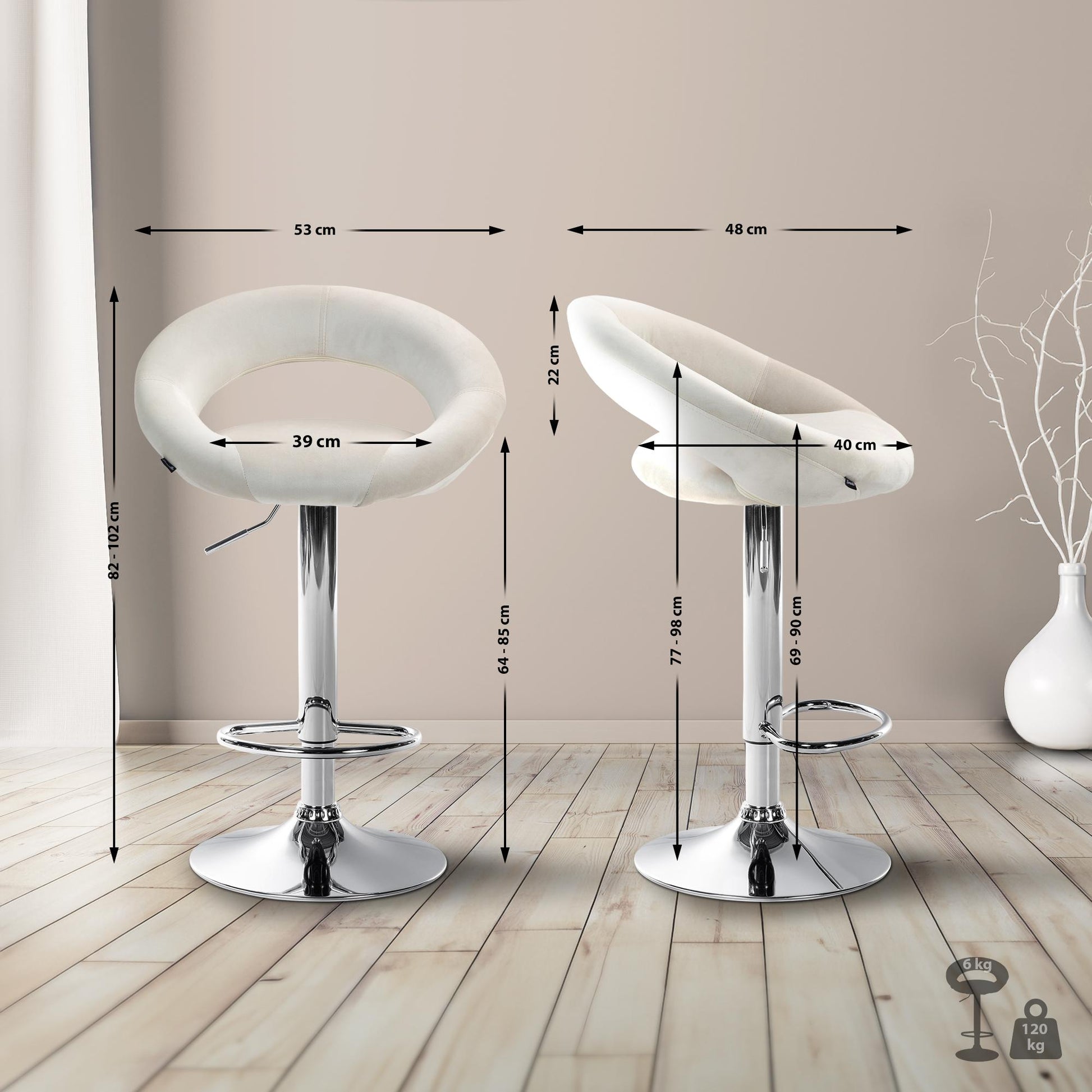 Deze barkruk combineert klassieke elegantie met hedendaags comfort. De fluwelen bekleding voegt een moderne uitstraling toe en zorgt voor een aangename zitervaring.