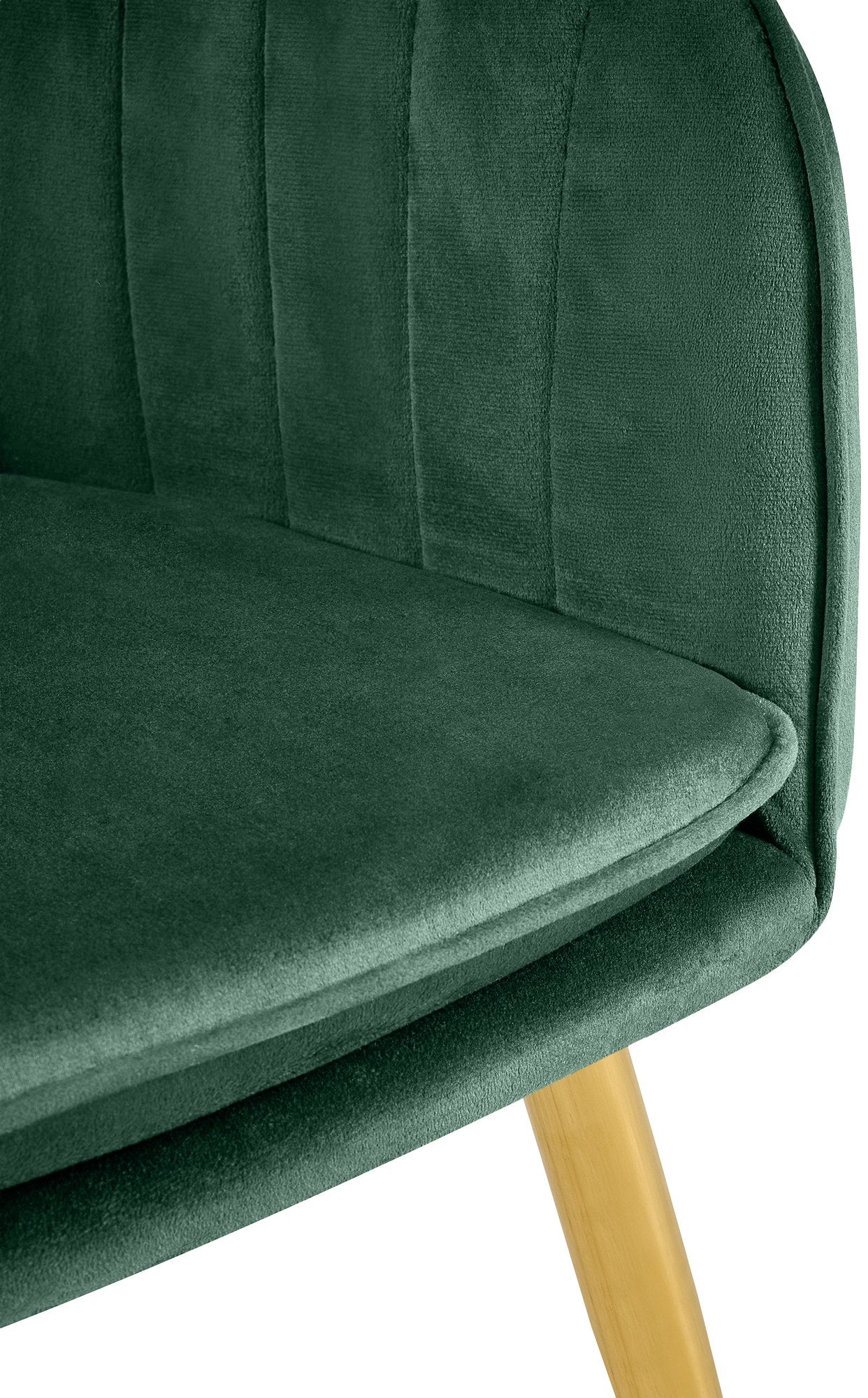 De eetkamerstoel maakt indruk door de stijlvolle combinatie van modern design, hoge functionaliteit en aangenaam zitcomfort. Dankzij de zachte fluwelen bekleding, ergonomisch gevormde rugleuning en gevoerde armleuningen, biedt de stoel maximaal comfort en is hij ideaal voor lange avonden eten, lezen of werken.