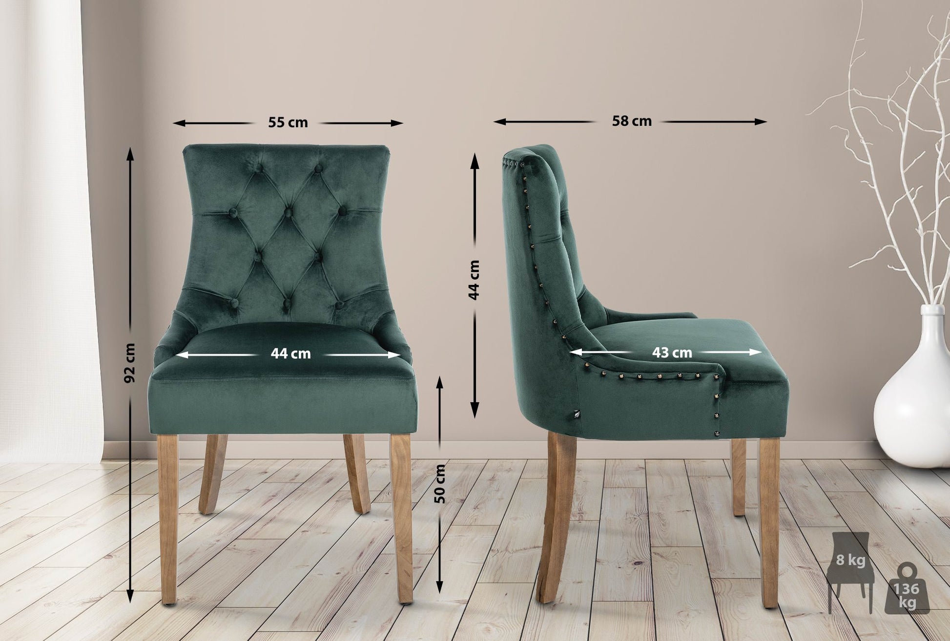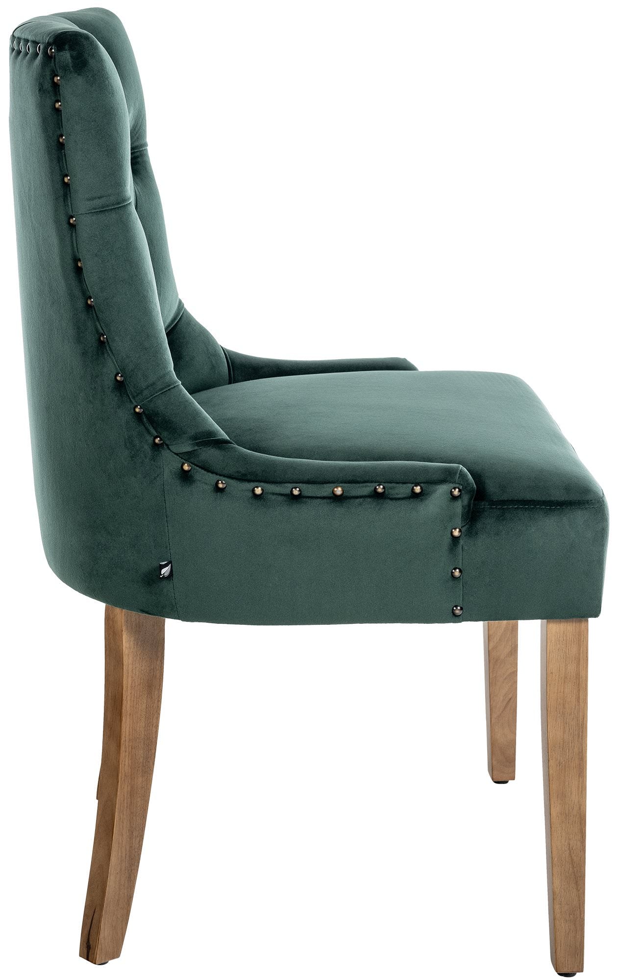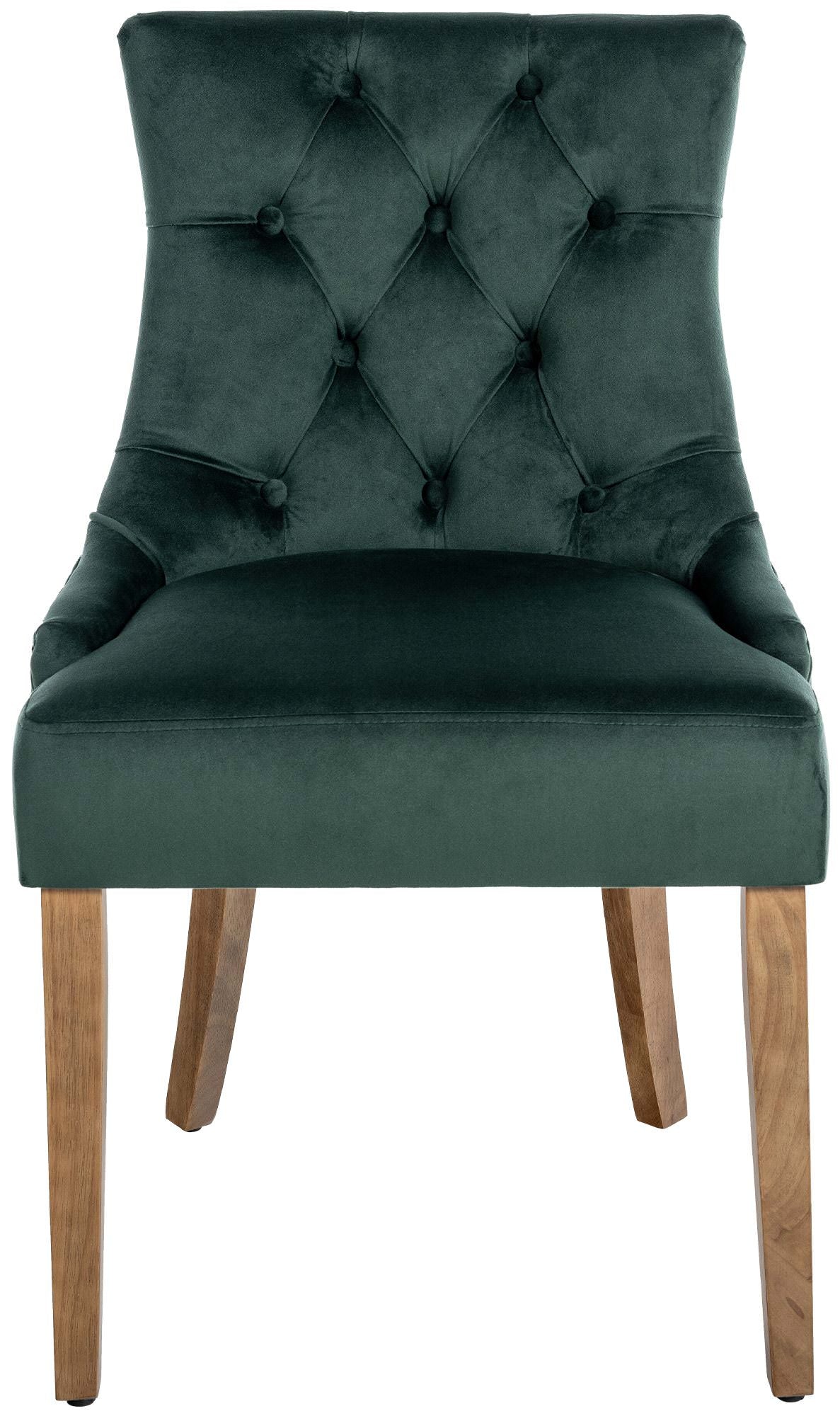 Deze eetkamerstoel brengt stijl in uw huis. De gestoffeerde zitting met fluwelen bekleding en verfijnde siernaden en knopen maken het ontwerp elegant. Het houten frame zorgt voor stabiliteit. Het biedt zowel comfort als stijl voor dagelijks gebruik en is perfect voor moderne interieurs.