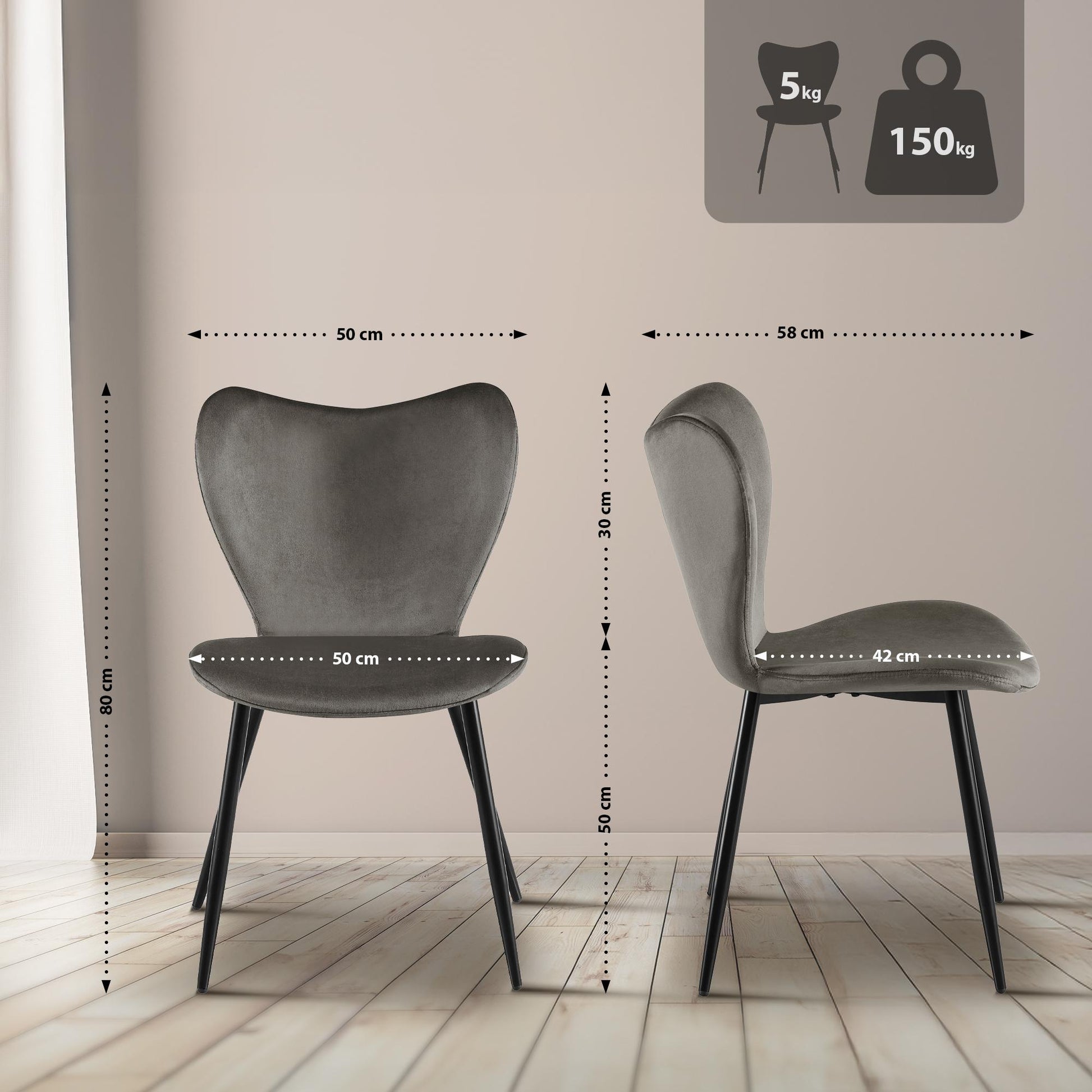 Fluwelen Eetkamerstoel - Velvet Stoel - Ergonomisch Comfort, Luxe & Stabiel, Belastbaar tot 150 kg