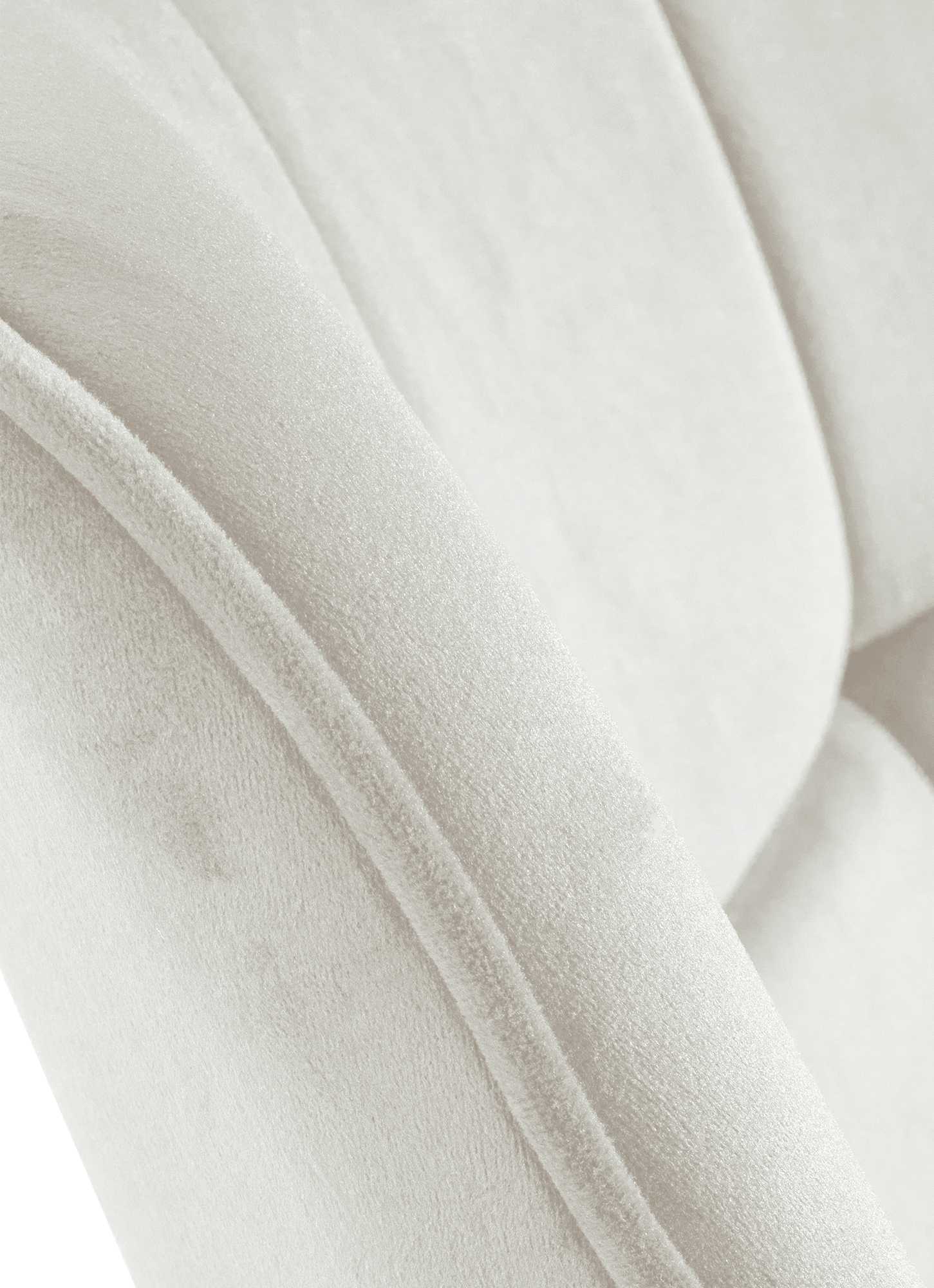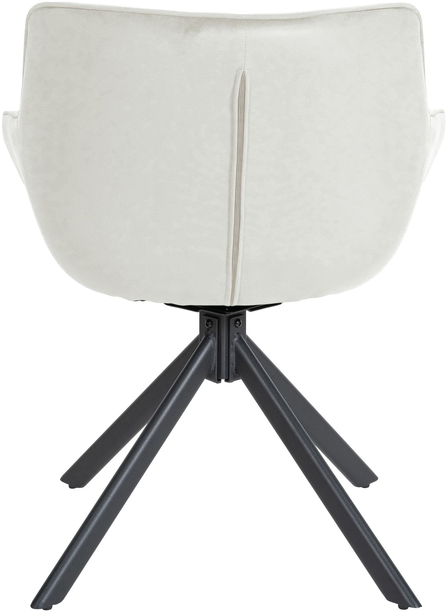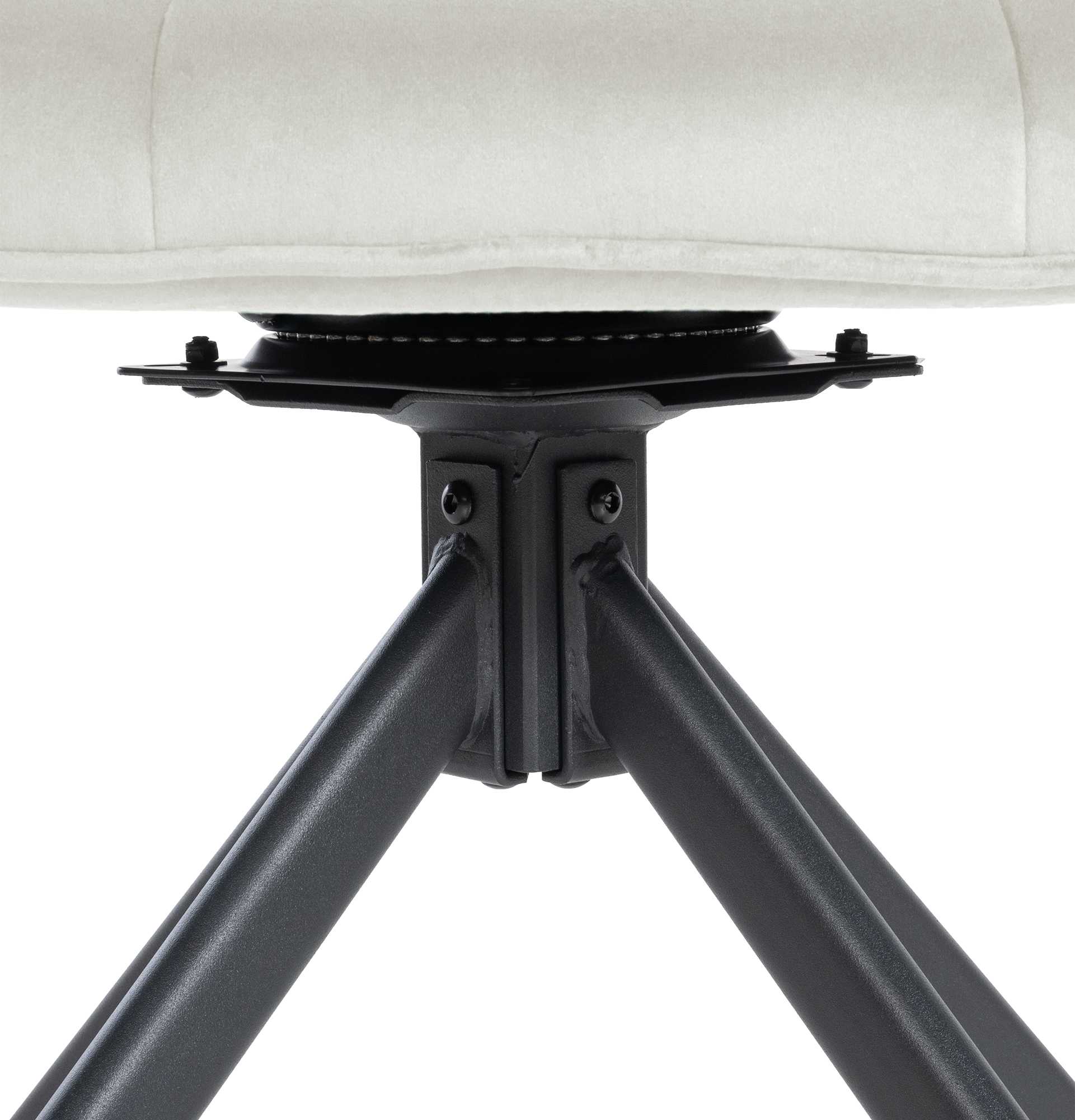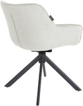 Ondersteund door een modern metalen frame met vier poten en een speciaal mechanisme dat de stoel na gebruik automatisch in de oorspronkelijke positie terugdraait. Bovendien zijn er vloerbeschermers aanwezig om krassen op de vloer te voorkomen. Deze stoel combineert esthetisch design met uitzonderlijk comfort, en toont praktische zorg voor de duurzaamheid van je interieur.