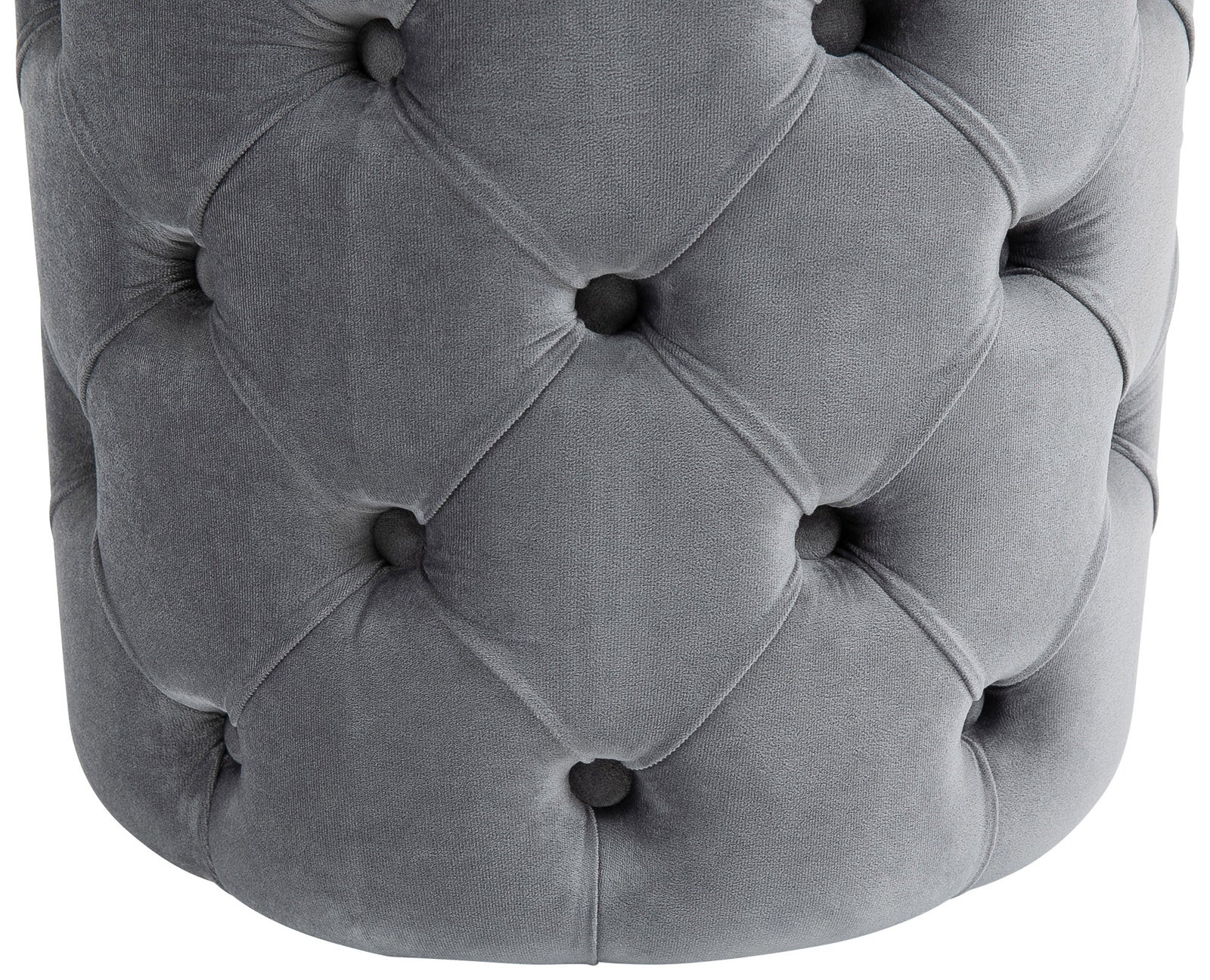 Stijlvolle fluwelen poef in Chesterfield-design, grijs, M