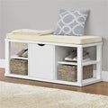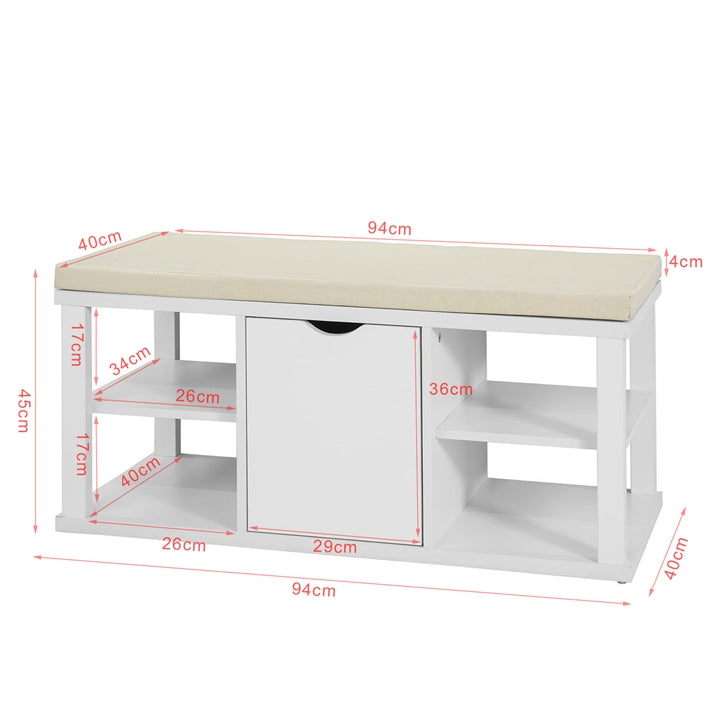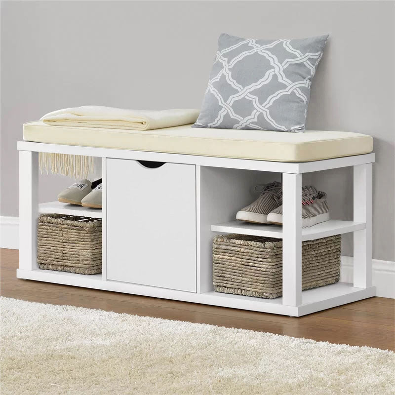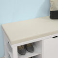 Comfortabele zitoptieUitgerust met een comfortabel wit zitkussen, biedt deze bank een gezellige plek om te zitten en te ontspannen tijdens het aan- of uittrekken van schoenen, waardoor het een praktische toevoeging is aan elke gang of slaapkamer.