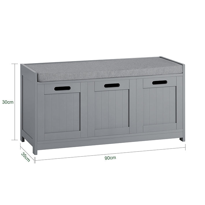Gangbank met schoenenopberger - Schoenenkast - Ingangsorganizer - Comfortabele gewatteerde zitting - Verwijderbaar kussen - MDF-constructie - 90 cm x 45 cm x 35 cm