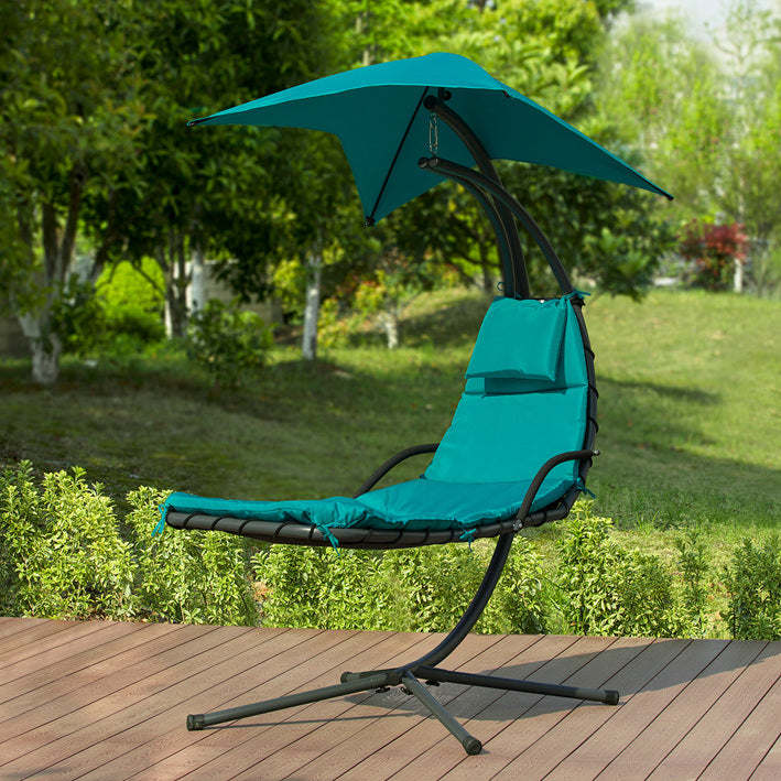 Garden Swing - Drijvende ligstoel met parasol - Ligstoel - Turquoise - Ergonomisch ontwerp - Afneembare kap - Hoge stabiliteit - 170 cm x 210 cm x 100 cm